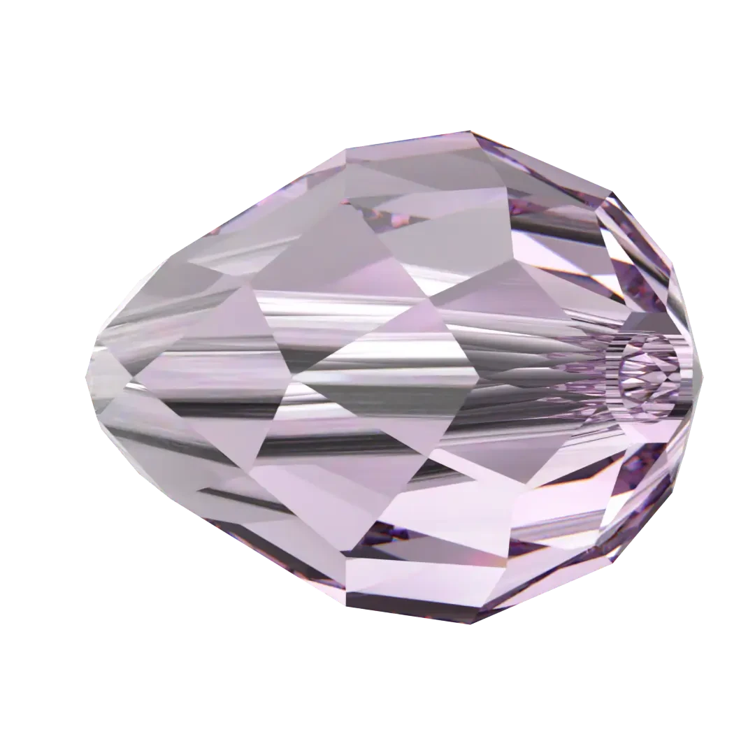 Swarovski crystal beads Drop (5500) in Light Amethyst have a smooth thread hole and are multi-faceted to reflect the light, making them perfect to create bespoke designs. Swarovski Drop shaped crystals are traditional drop in shape with a rounded bottom and a pointed top. They have a symmetrical shape with a faceted surface that creates a brilliant shine and sparkle.