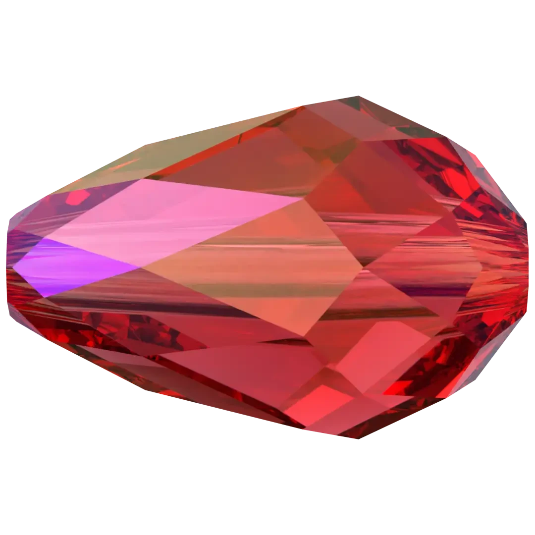 Swarovski crystal beads Drop (5500) in Light Siam Shimmer 2X have a smooth thread hole and are multi-faceted to reflect the light, making them perfect to create bespoke designs. Swarovski Drop shaped crystals are traditional drop in shape with a rounded bottom and a pointed top. They have a symmetrical shape with a faceted surface that creates a brilliant shine and sparkle.