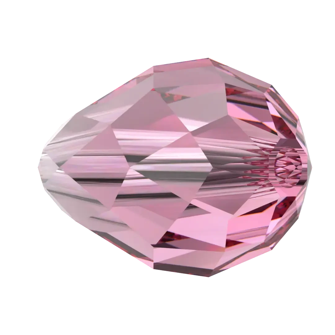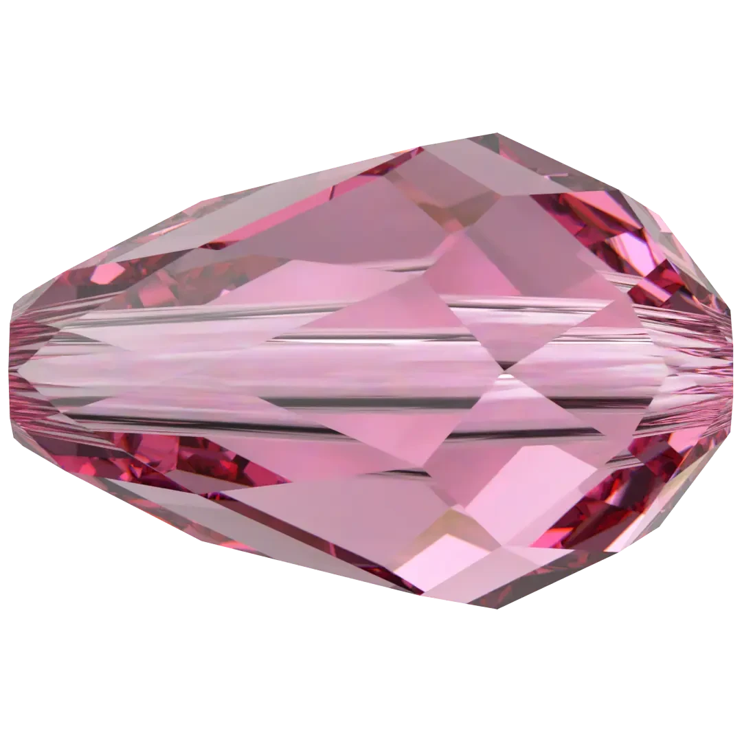 Swarovski crystal beads Drop (5500) in Rose have a smooth thread hole and are multi-faceted to reflect the light, making them perfect to create bespoke designs. Swarovski Drop shaped crystals are traditional drop in shape with a rounded bottom and a pointed top. They have a symmetrical shape with a faceted surface that creates a brilliant shine and sparkle.