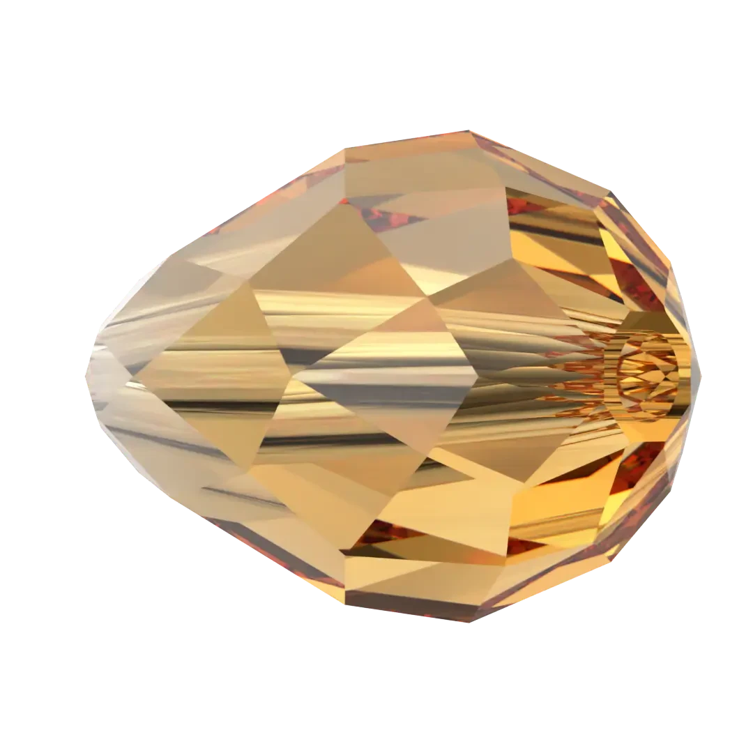 Swarovski crystal beads Drop (5500) in Topaz have a smooth thread hole and are multi-faceted to reflect the light, making them perfect to create bespoke designs. Swarovski Drop shaped crystals are traditional drop in shape with a rounded bottom and a pointed top. They have a symmetrical shape with a faceted surface that creates a brilliant shine and sparkle.