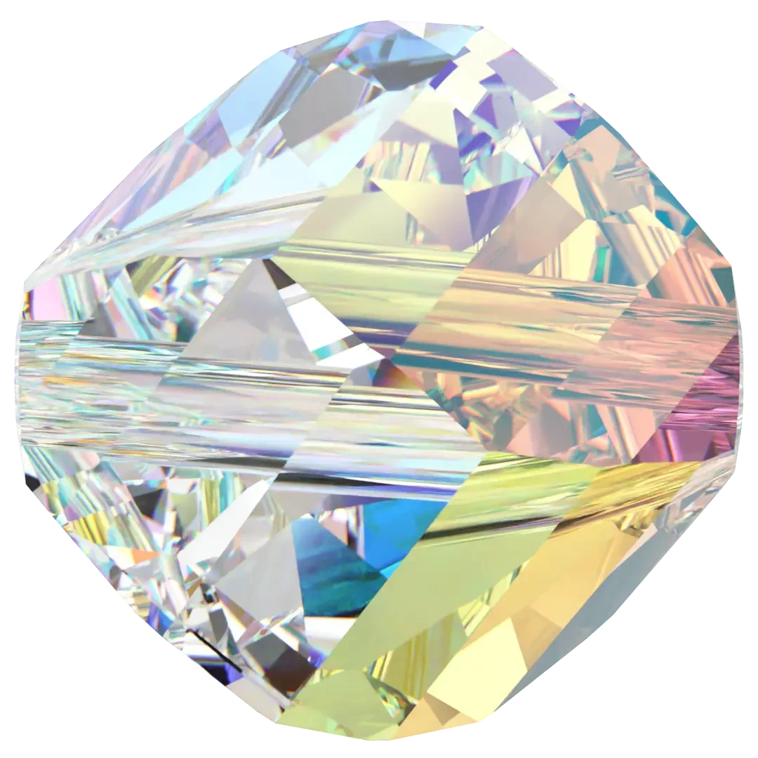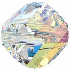 Crystal AB is a clear crystal that has a slightly iridescent finish which reflects light in a variety of colours, such as pink, blue, and green. It is often used in jewellery and accessories, particularly in beading and embellishments, to add a sparkling and multi-dimensional effect. Crystal AB is a versatile and popular colour that can add a touch of sparkle and glamour to any design.