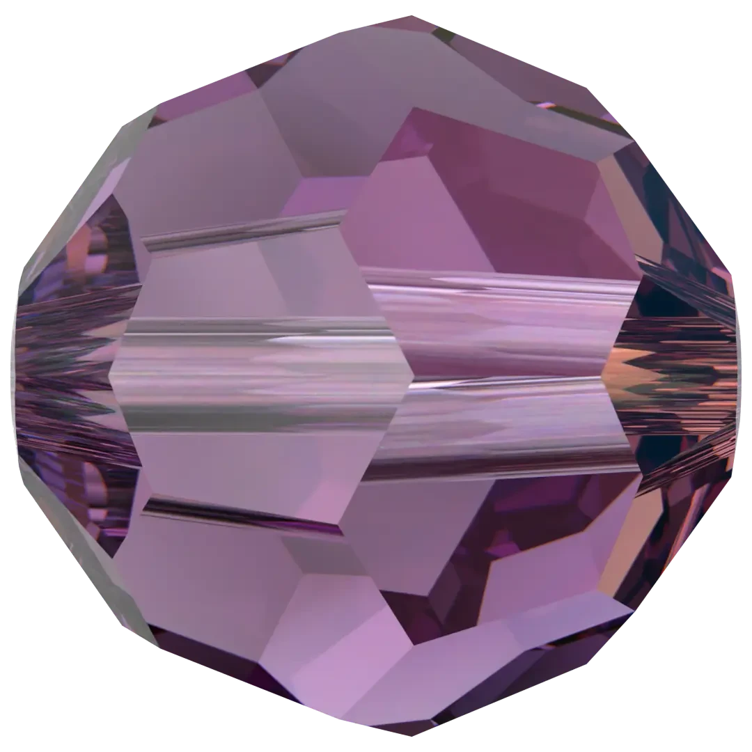 Swarovski crystal beads Round (5000) in Amethyst Shimmer have a smooth thread hole and are multi-faceted to reflect the light, making them perfect to create bespoke designs. These Round beads are shaped into a uniform sphere and are highly sought after for their versatility, wide range of sizes, and availability in an extensive colour palette. The many facets of round beads create a sparkling effect that reflects light from various angles, making them ideal for adding shine and dimension to jewellery and embellishment projects.