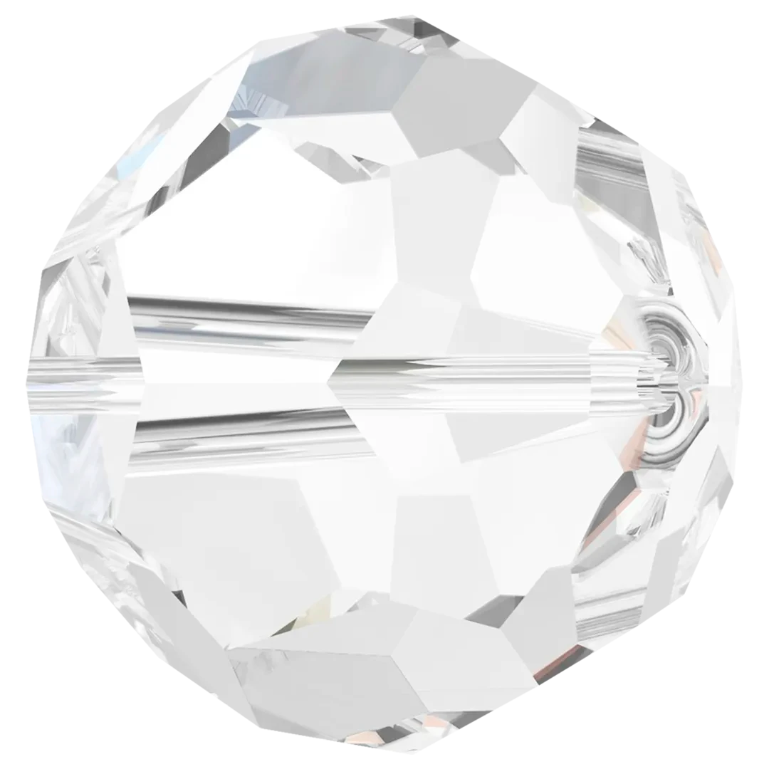 Swarovski crystal beads Round (5000) in Crystal have a smooth thread hole and are multi-faceted to reflect the light, making them perfect to create bespoke designs. These Round beads are shaped into a uniform sphere and are highly sought after for their versatility, wide range of sizes, and availability in an extensive colour palette. The many facets of round beads create a sparkling effect that reflects light from various angles, making them ideal for adding shine and dimension to jewellery and embellishment projects.