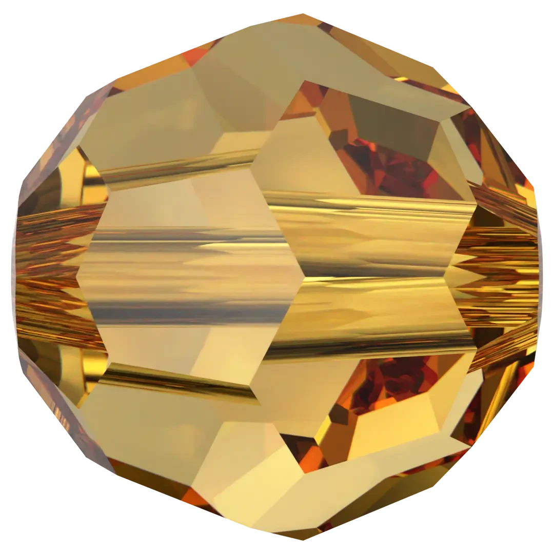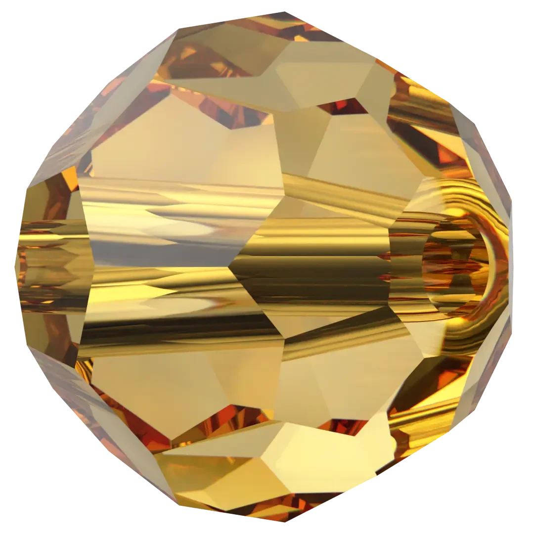 Swarovski crystal beads Round (5000) in Golden Topaz have a smooth thread hole and are multi-faceted to reflect the light, making them perfect to create bespoke designs. These Round beads are shaped into a uniform sphere and are highly sought after for their versatility, wide range of sizes, and availability in an extensive colour palette. The many facets of round beads create a sparkling effect that reflects light from various angles, making them ideal for adding shine and dimension to jewellery and embellishment projects.