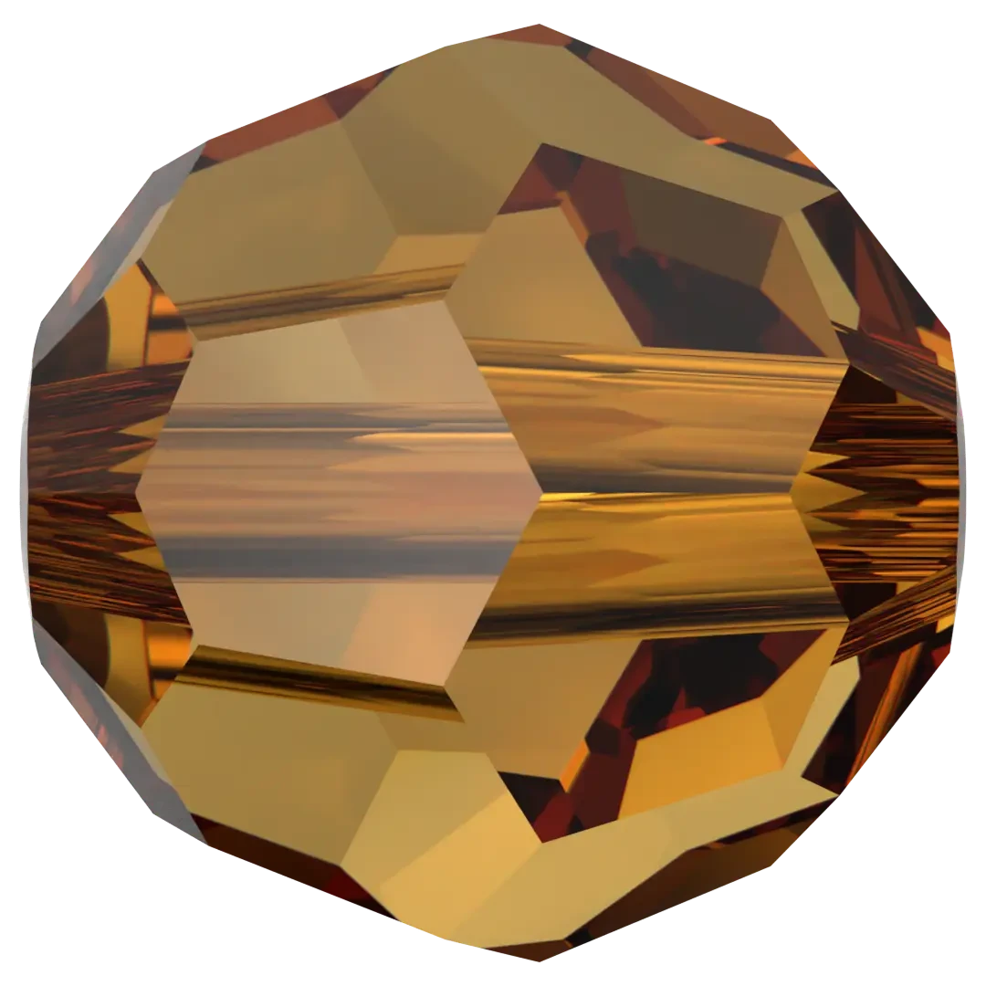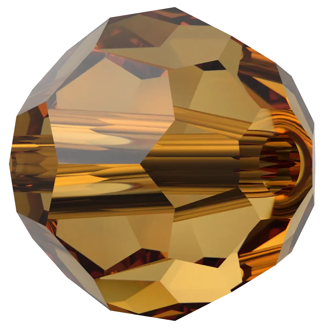 Swarovski crystal beads Round (5000) in Light Amber have a smooth thread hole and are multi-faceted to reflect the light, making them perfect to create bespoke designs. These Round beads are shaped into a uniform sphere and are highly sought after for their versatility, wide range of sizes, and availability in an extensive colour palette. The many facets of round beads create a sparkling effect that reflects light from various angles, making them ideal for adding shine and dimension to jewellery and embellishment projects.