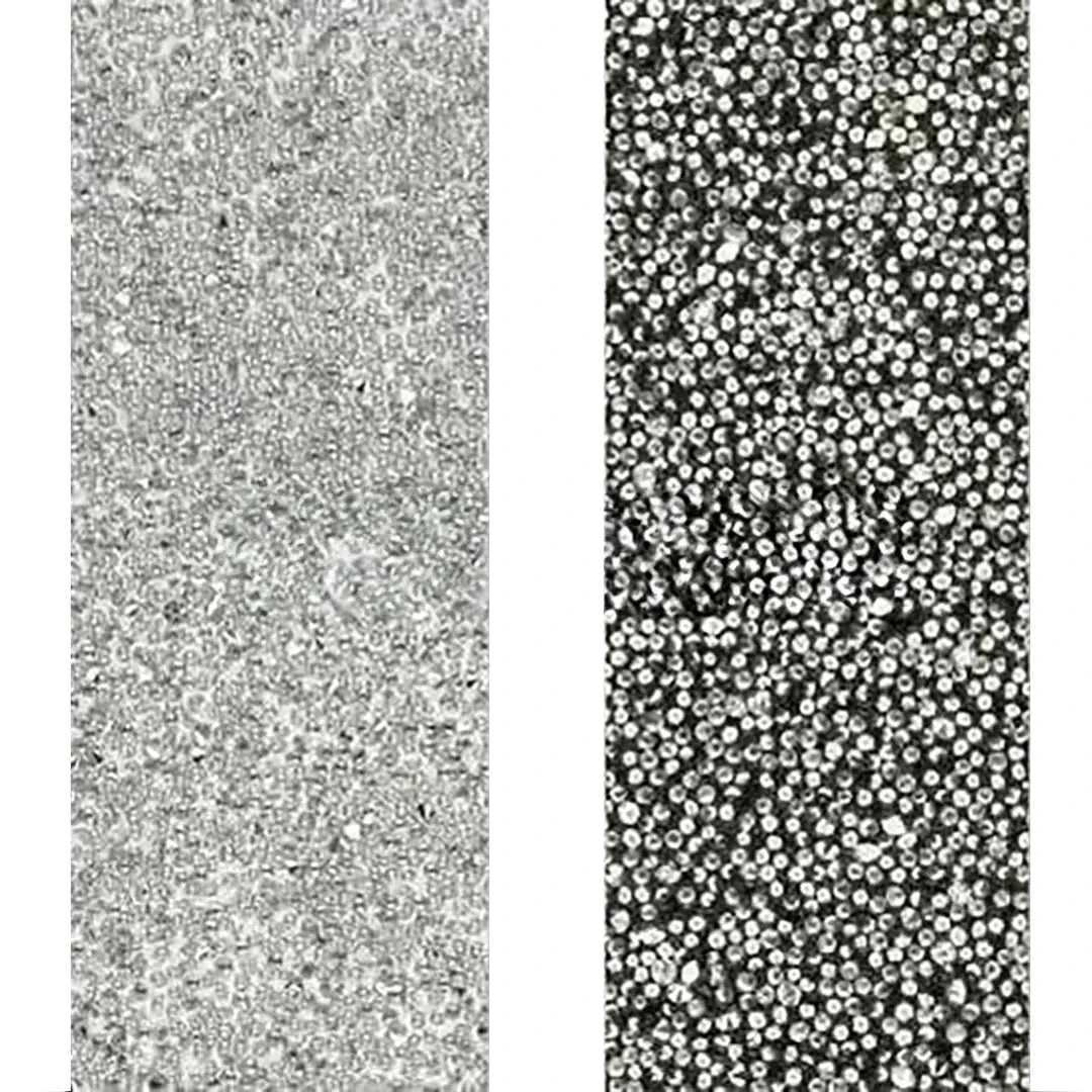 Crystal Fabric Bandings consists of a carrier material that is completely covered with millions of tiny cut and uncut crystals. Depending on the colour and surface of the carrier material, Crystal Fabric with transparent film changes its look dramatically. Crystal Fabric on a black film creates a deep, mysteriously soft gleam, dressed up with a very alluring sparkle.