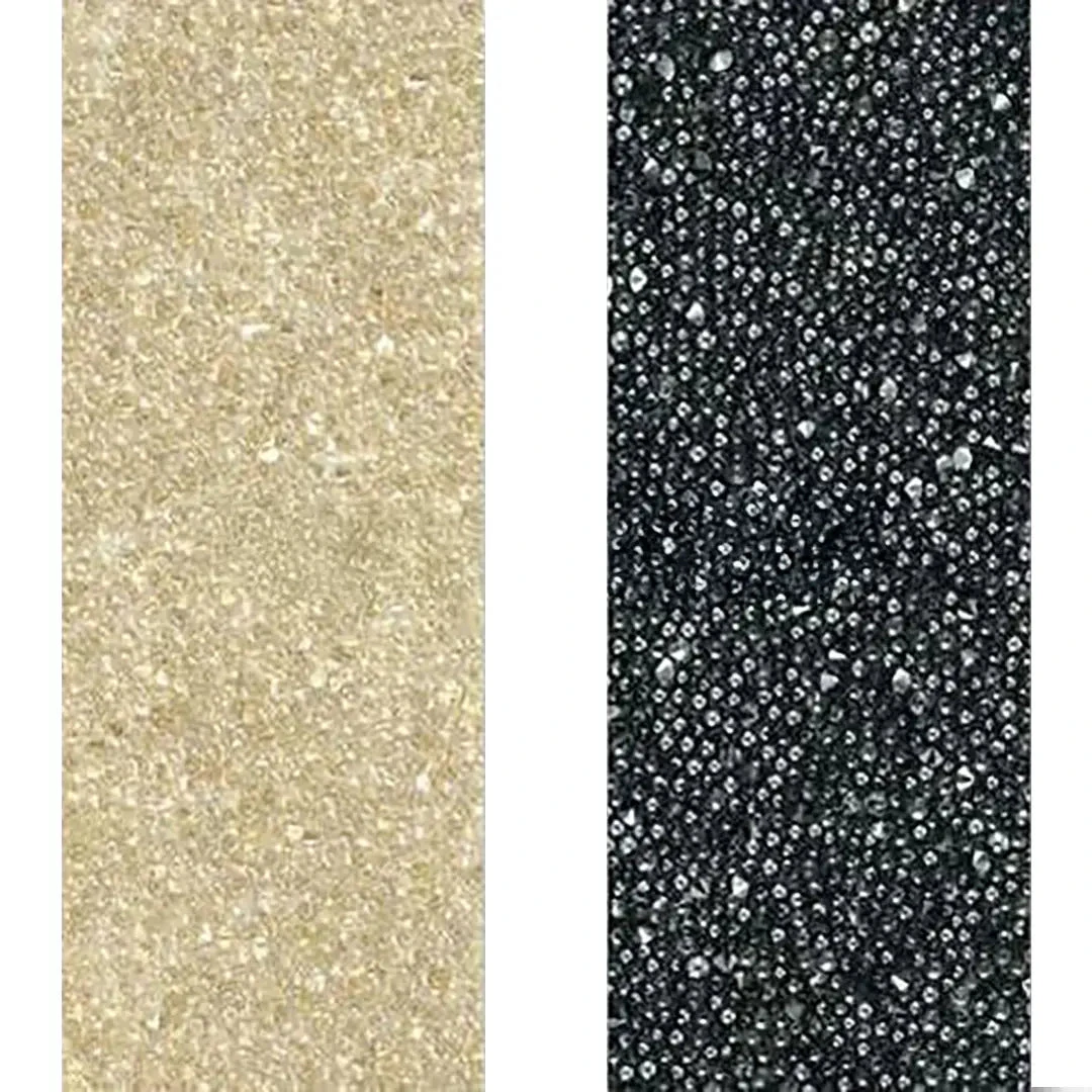 Crystal Fabric Bandings consists of a carrier material that is completely covered with millions of tiny cut and uncut crystals. Depending on the colour and surface of the carrier material, Crystal Fabric with transparent film changes its look dramatically. Crystal Fabric on a black film creates a deep, mysteriously soft gleam, dressed up with a very alluring sparkle.