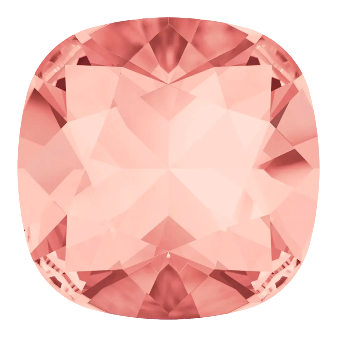 Swarovski fancy stones Cushion Square (4470) in Rose Peach are multi faceted pointed back crystals that have no thread hole and can be applied to fabric or to create jewellery designs using metal settings or in pre-made cavities. Swarovski Cushion Square stone is a crystal stone that features a square shape with rounded edges, giving it a cushion-like appearance. The stone is cut with multiple facets, which enhances its brilliance and creates a beautiful sparkle.