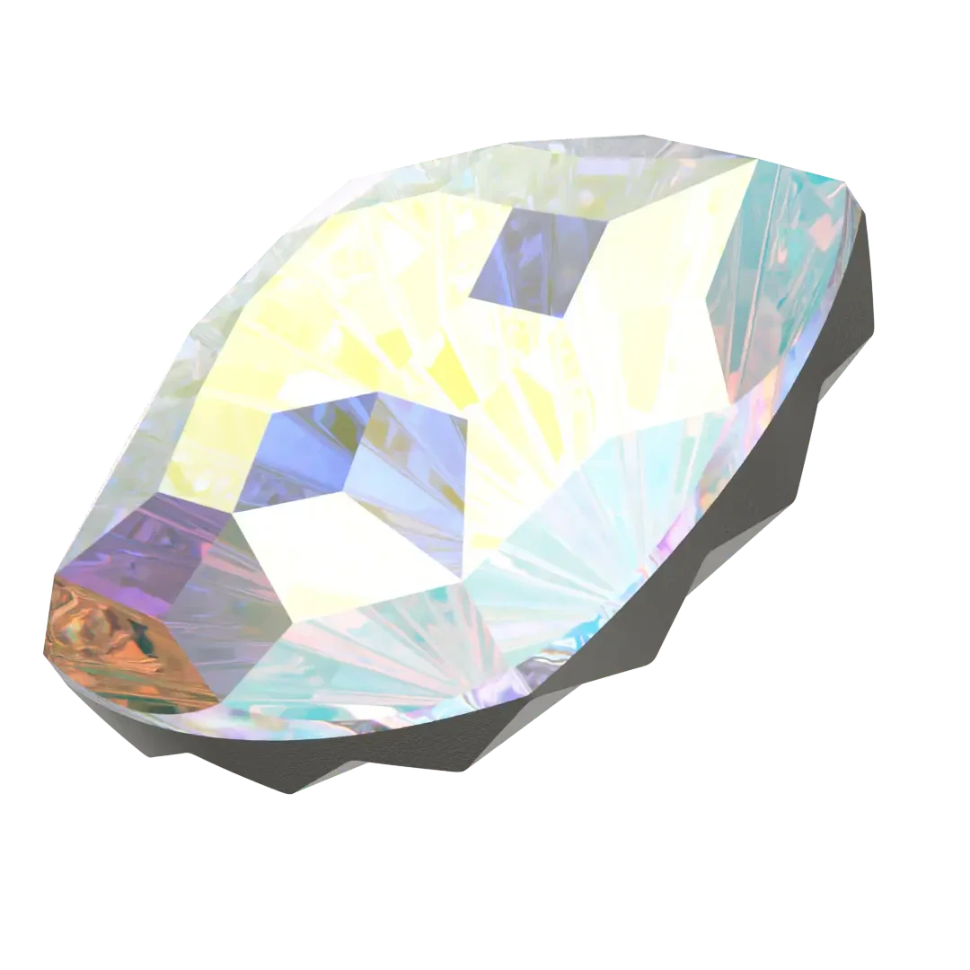 Crystal AB is a clear crystal that has a slightly iridescent finish which reflects light in a variety of colours, such as pink, blue, and green. It is often used in jewellery and accessories, particularly in beading and embellishments, to add a sparkling and multi-dimensional effect. Crystal AB is a versatile and popular colour that can add a touch of sparkle and glamour to any design.