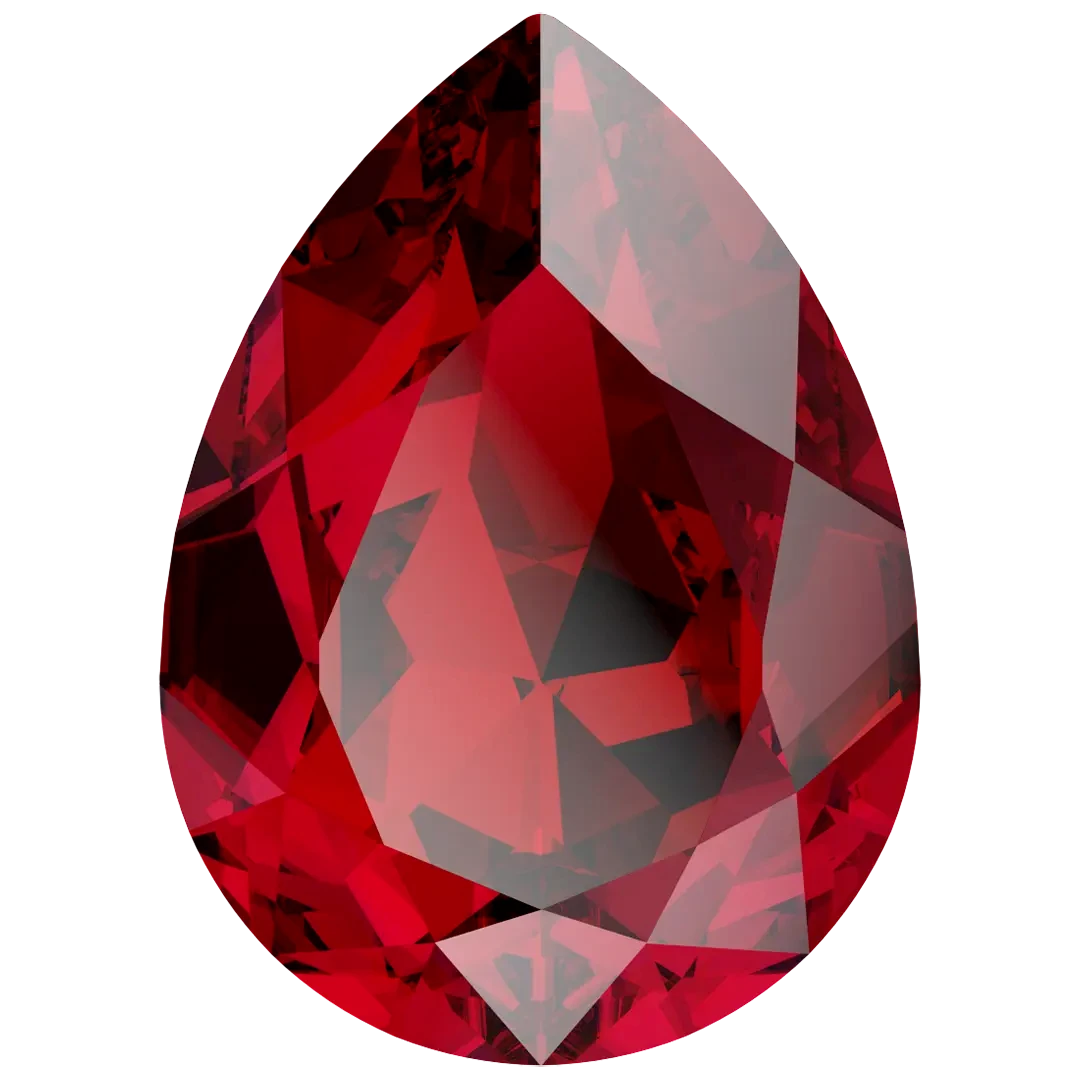 Swarovski fancy stones Pear (4320) in Siam are multi faceted pointed back crystals that have no thread hole and can be applied to fabric or to create jewellery designs using metal settings or in pre-made cavities. Swarovski Pear shaped crystals are traditional pear in shape with a rounded bottom and a pointed top. They have a symmetrical shape with a faceted surface that creates a brilliant shine and sparkle.