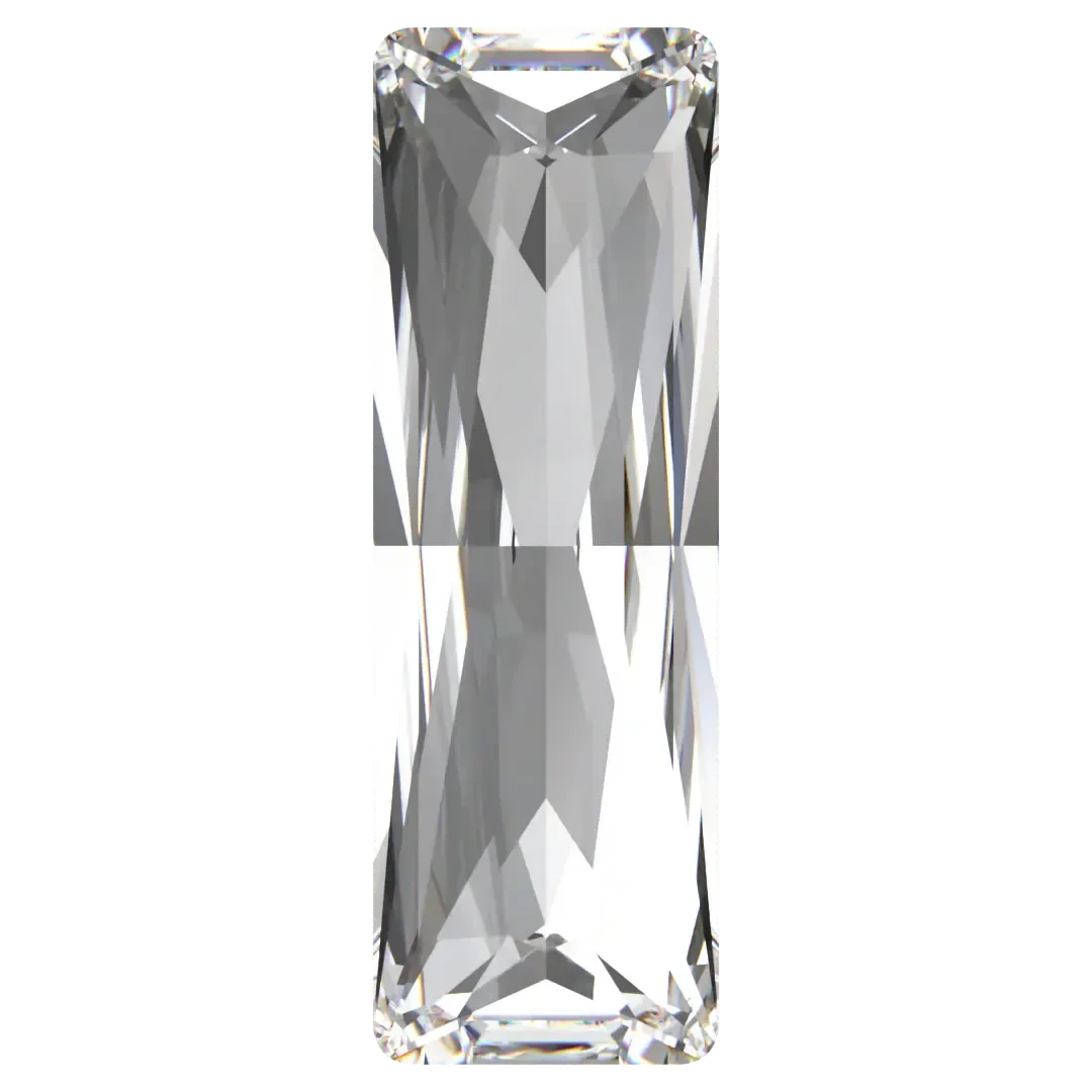 Swarovski fancy stones Princess Baguette (4547) in Crystal are multi faceted pointed back crystals that have no thread hole and can be applied to fabric or to create jewellery designs using metal settings or in pre-made cavities. Swarovski Princess Baguette features a unique combination of a princess cut with a baguette shaped stone. The stone has a rectangular shape with sharp, clean edges and curved surface, and is characterized by its intricate faceting pattern that maximizes the reflection of light and colour.