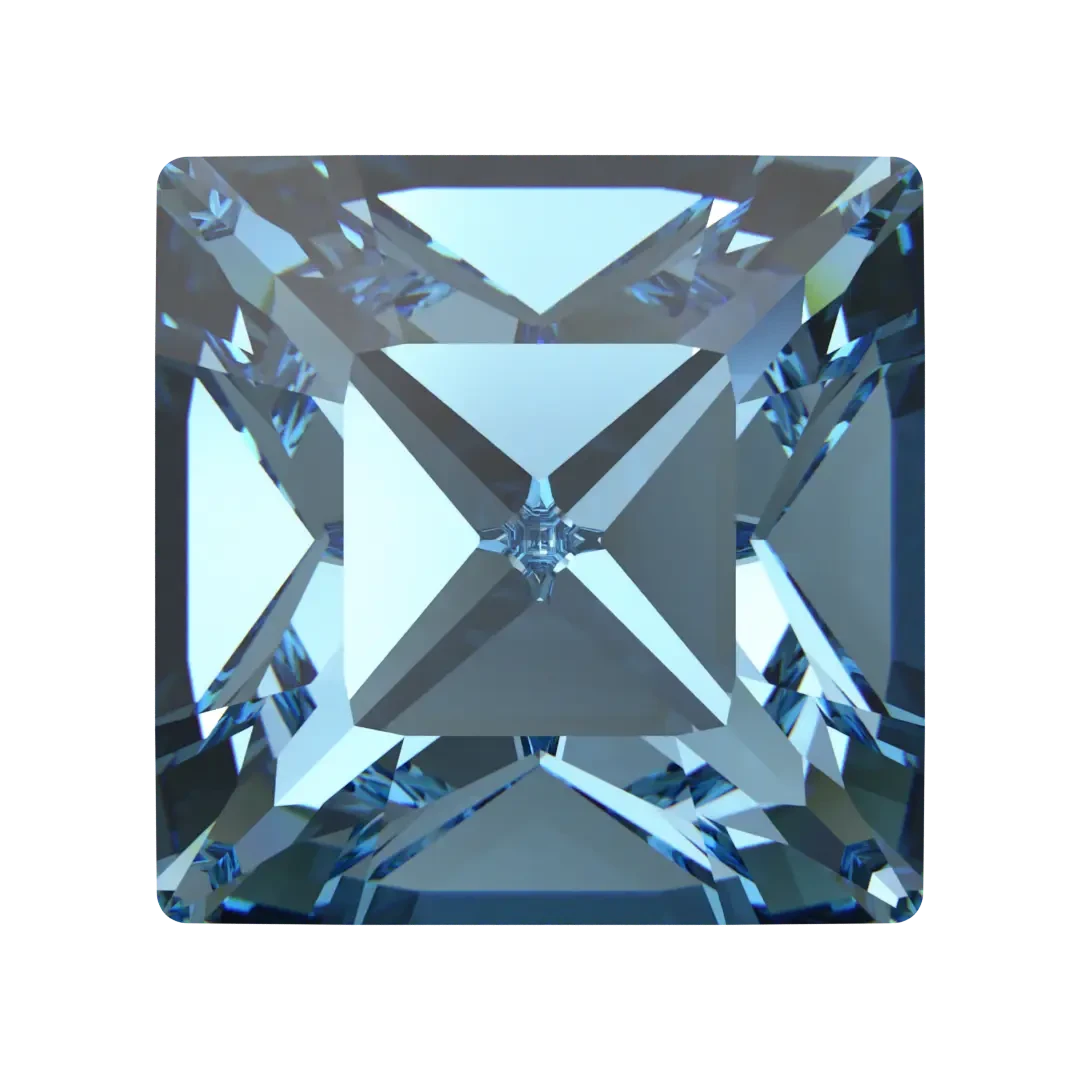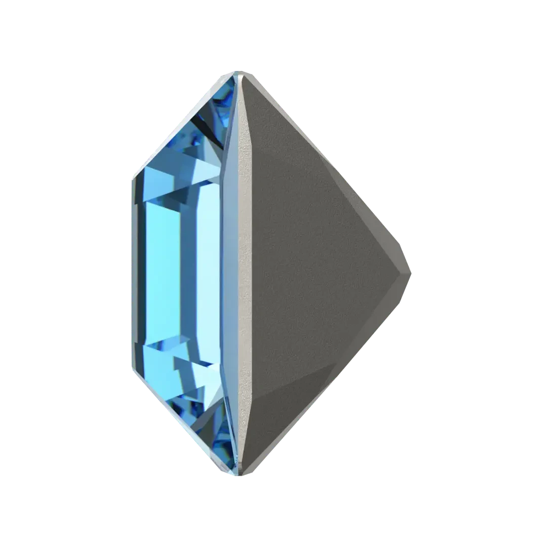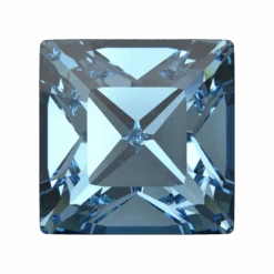 Swarovski fancy stones Xilion Square (4428) in Aquamarine are multi faceted pointed back crystals that have no thread hole and can be applied to fabric or to create jewellery designs using metal settings or in pre-made cavities. Swarovski Xilion Square stone is a crystal component that features a square shape with sharp, clean edges and a unique faceting pattern. The Xilion cut has alternating large and small facets that enhance the stone’s brilliance, creating a sparkling and dazzling effect that adds a touch of elegance and sophistication to any jewellery design.