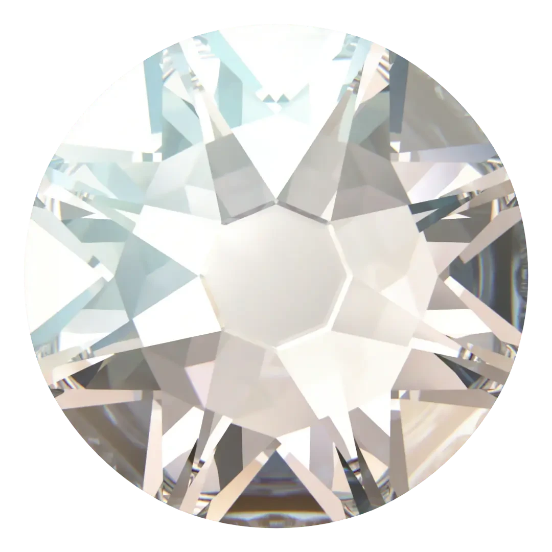 Swarovski rhinestones non hotfix Round (2000 Rose, 2058 Xilion & 2088 Xirius) in Crystal Moonlight are flat back crystals that can easily be applied to most surfaces with glue. Crystal Moonlight is a soft and serene shade of crystal that is inspired by the colour of moonlight. It is a cool-toned colour that has a subtle hint of silver undertones, giving it a sense of calmness and tranquility. Crystal Moonlight is often associated with qualities such as purity, clarity, and mystery. It is a popular colour in fashion, costume design, and wedding decor, and is often used to create a soft and dreamy look. Crystal Moonlight can also be combined with other colours, such as lavender, pale pink, or silver, to create different moods and styles.