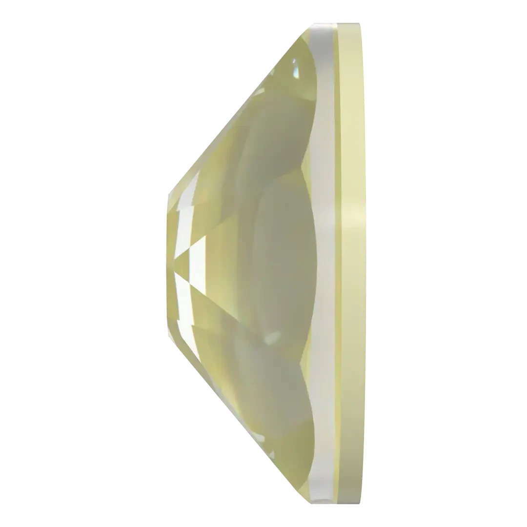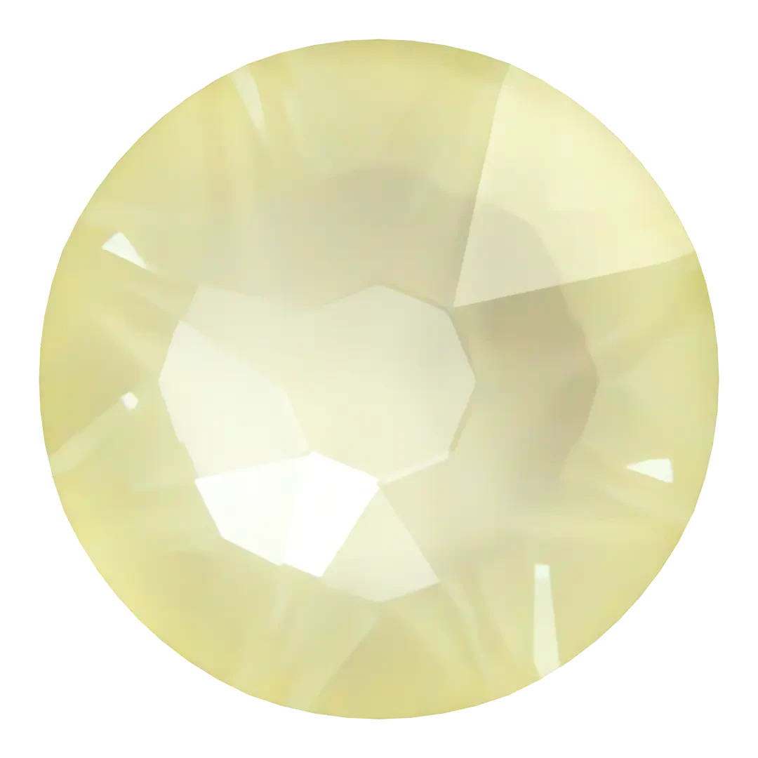 Swarovski rhinestones non hotfix Round (2000 Rose, 2058 Xilion & 2088 Xirius) in Crystal Soft Yellow Ignite are flat back crystals that can easily be applied to most surfaces with glue. Crystal Soft Yellow Ignite is a gentle and light hue that takes inspiration from the pale tones of a sunlit meadow or the subtle warmth of a soft morning glow. It is a delicate and inviting colour, characterized by its mild and pastel appearance. Crystal Soft Yellow Ignite is a light variant of yellow that exudes a sense of warmth, positivity, and freshness without being overly vibrant. Crystal Soft Yellow Ignite can create a cheerful and uplifting atmosphere, making it a popular choice for various design application.