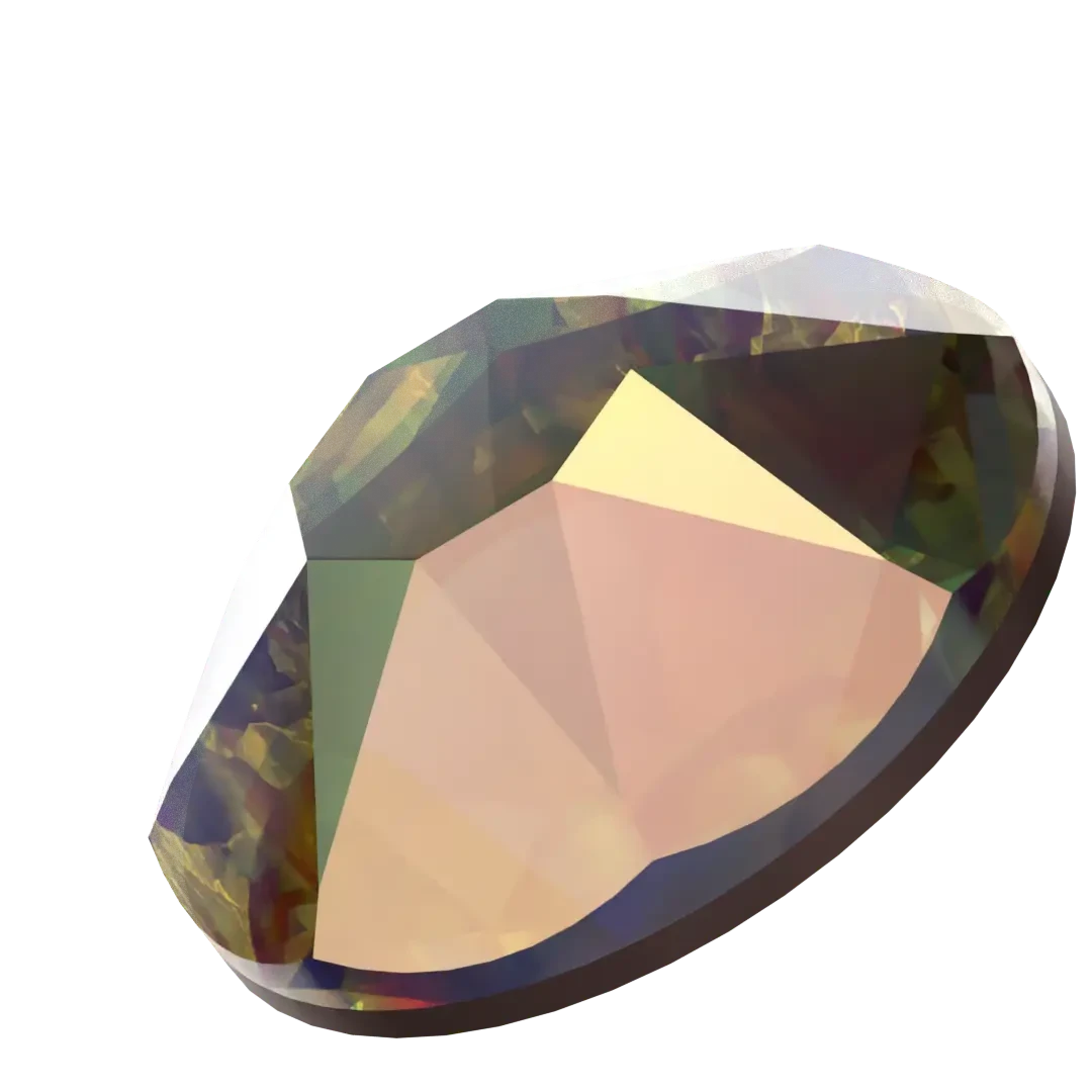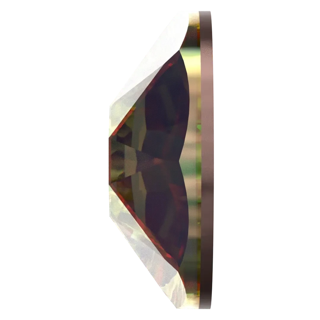 Swarovski flat back crystals are available in three types of cut: 2000 Rose Cut with 8 facets (SS3 and SS4); 2058 Xilion Rose Cut with 14 facets that optimises the light reflection of smaller sized crystals (SS5 to SS10); and 2088 Xirius Rose Cut with 16 facets and a unique star cut design which provides the ultimate brilliance (SS12 to SS48).