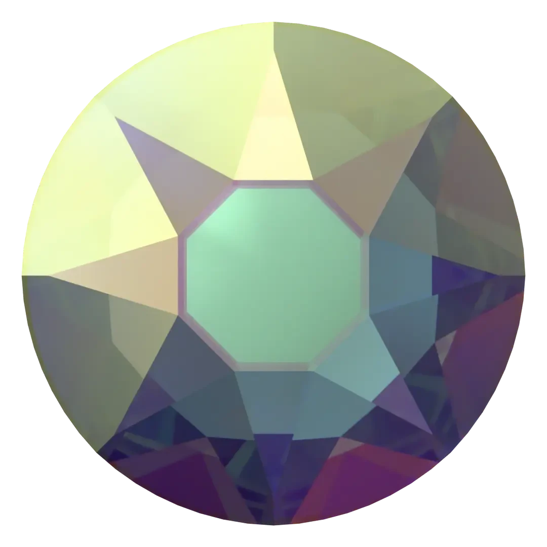 Swarovski rhinestones non hotfix Round (2000 Rose, 2058 Xilion & 2088 Xirius) in Jonquil AB are flat back crystals that can easily be applied to most surfaces with glue. Jonquil AB is a light to medium shade of yellow, named after a type of daffodil flower that is often yellow in colour. It is a soft and warm hue, with a slight greenish or brownish undertone. Jonquil AB is often described as a cheerful and sunny colour that evokes feelings of happiness, optimism, and energy. Jonquil AB is commonly used in fashion and interior design to add a pop of colour and to create a bright and cheerful mood. Crystals with an AB (Aurora Borealis) effect have an iridescent coating that covers the top of the crystal, making it shimmer like the rainbow. When this effect is applied over the top of a coloured crystal, you can still see the base colour underneath but there is a noticeable pink and blue shine to it as it hits the light.