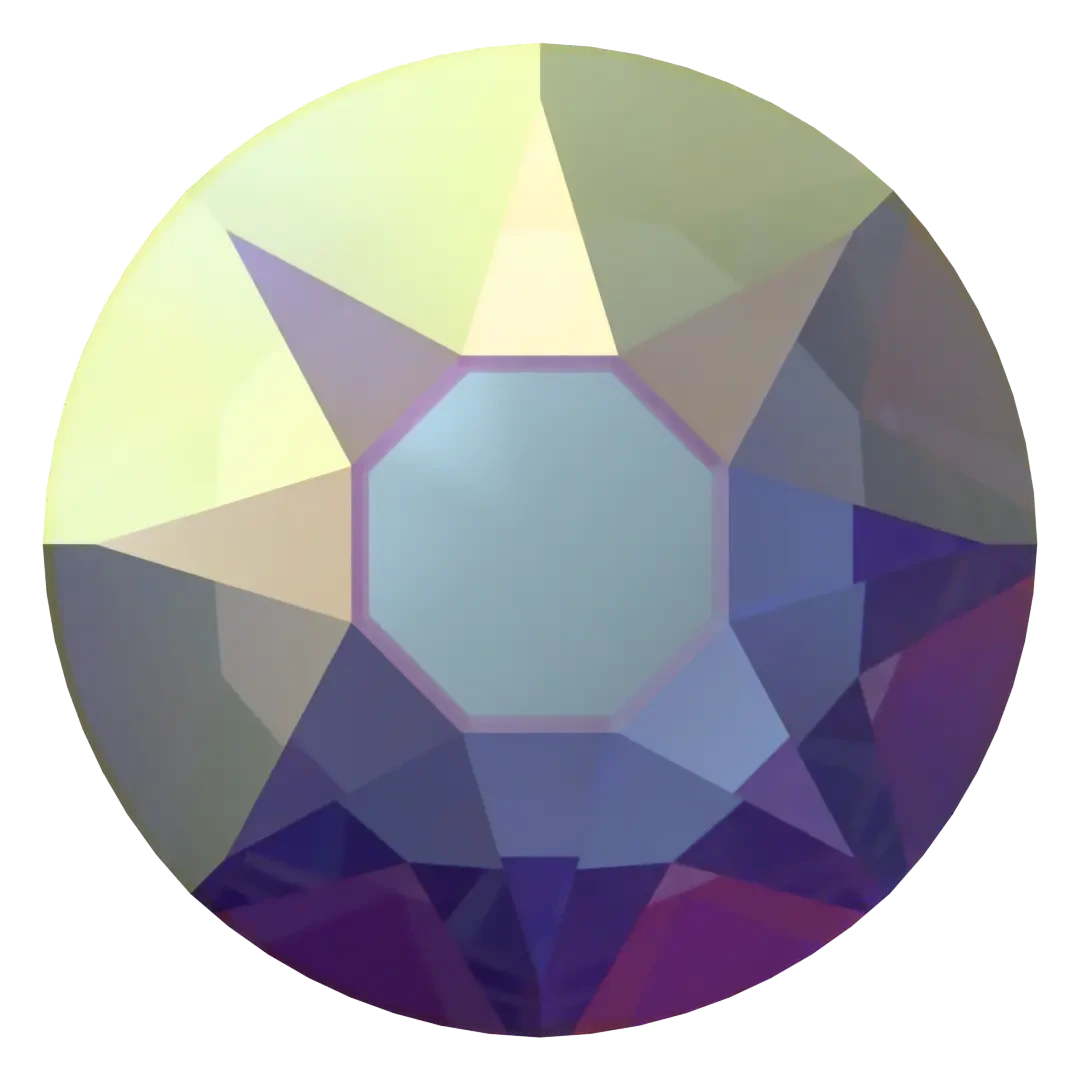 Swarovski flat back crystals are available in three types of cut: 2000 Rose Cut with 8 facets (SS3 and SS4); 2058 Xilion Rose Cut with 14 facets that optimises the light reflection of smaller sized crystals (SS5 to SS10); and 2088 Xirius Rose Cut with 16 facets and a unique star cut design which provides the ultimate brilliance (SS12 to SS48).