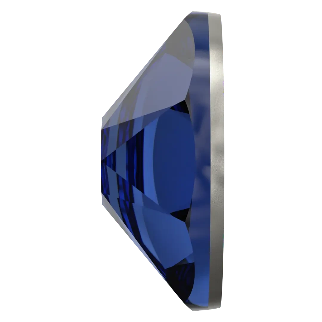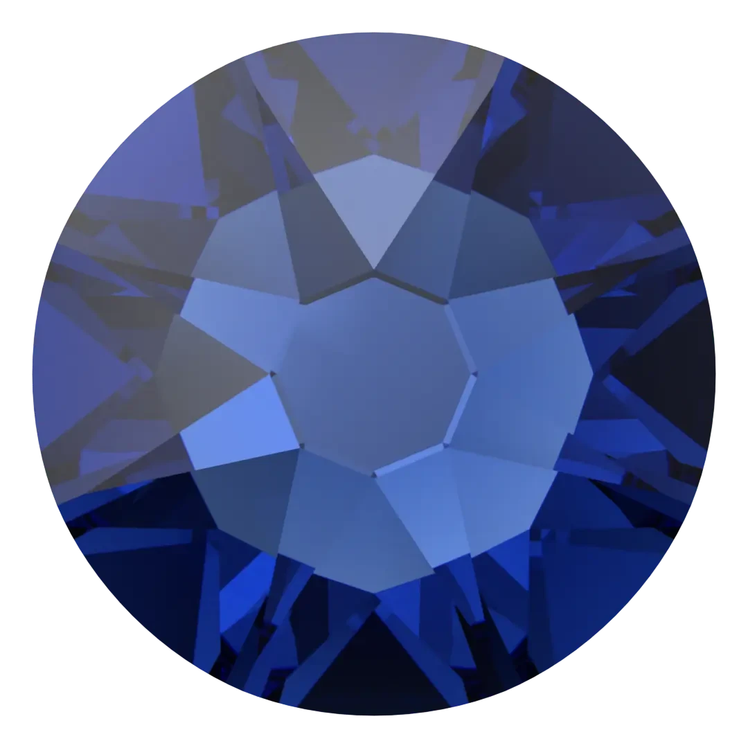 Swarovski rhinestones non hotfix Round (2000 Rose, 2058 Xilion & 2088 Xirius) in Recreated Dark Sapphire are flat back crystals that can easily be applied to most surfaces with glue. Recreated Dark Sapphire is a rich, deep shade of blue that closely resembles the colour of a polished sapphire gemstone. It exudes sophistication and elegance, with undertones of mystery and depth. The colour has subtle hints of navy or midnight blue, often with a slight greyish or purplish tint depending on the light. Recreated Dark Sapphire is frequently used in fashion, interior design, and branding to convey luxury, stability, and a sense of calm sophistication.