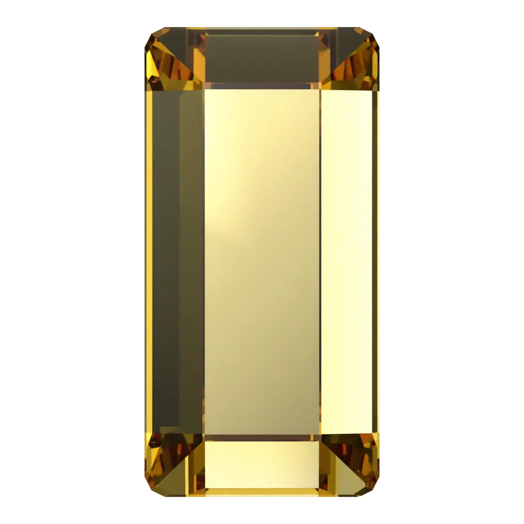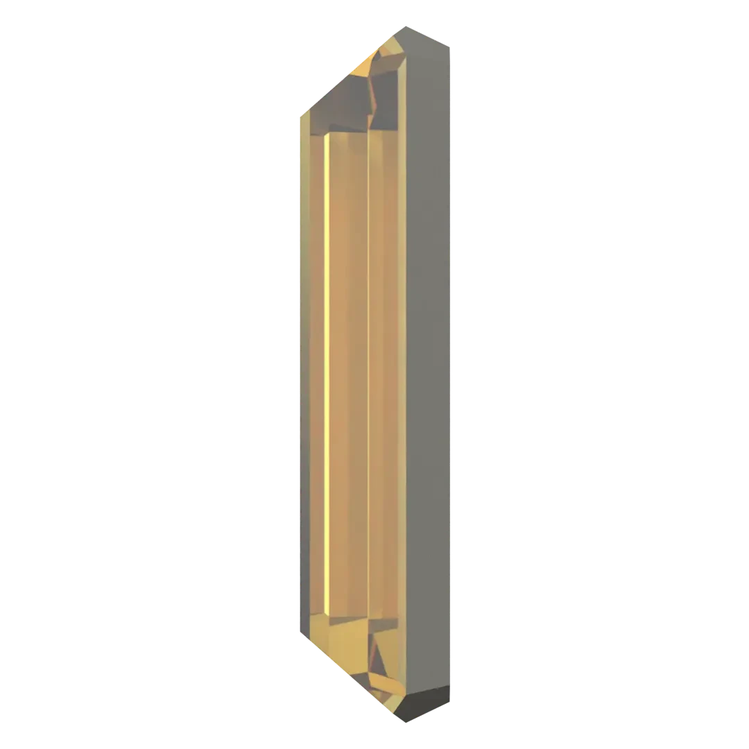 Swarovski rhinestones non hotfix Baguette (2510) in Recreated Dark Jonquil are flat back crystals that can easily be applied to most surfaces with glue. Swarovski Baguette shaped flat backs have a long and slender shape that resembles a French bread baguette . They are often used in costume design and are typically cut with straight sides and pointed ends to enhance their elongated shape.
