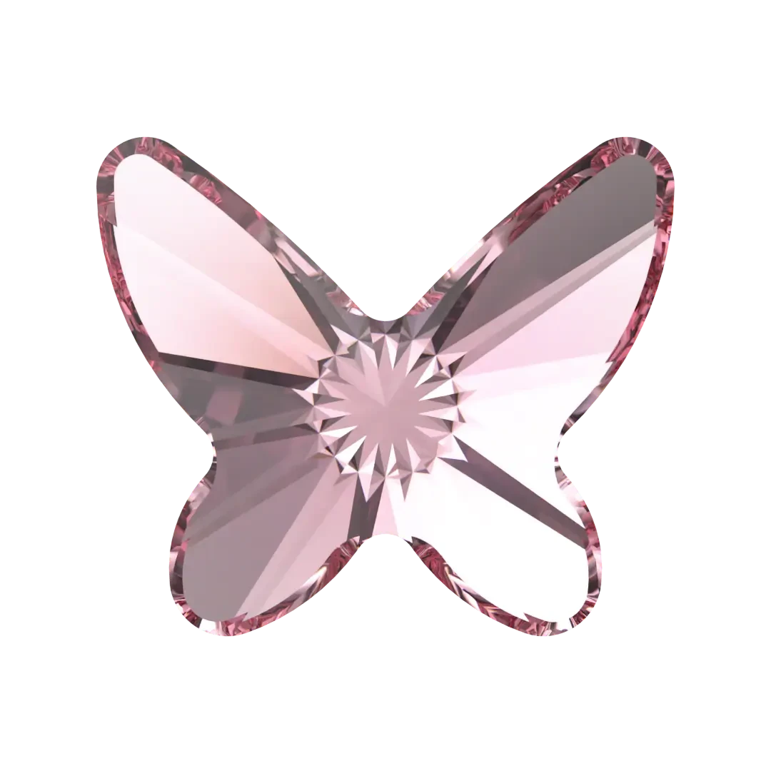 Swarovski rhinestones non hotfix Butterfly (2854) in Light Rose are flat back crystals that can easily be applied to most surfaces with glue. Swarovski Butterfly shaped crystals are intricately designed with a multi-faceted cut that draws inspiration from botanics. The multi-faceted surface of the crystal, which tapers to a raised point at the centre, adds a touch of fantasy and playfulness to any design, making it a versatile choice for a variety of projects.