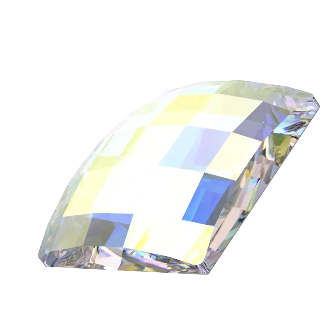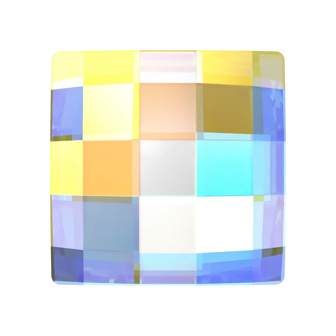 Swarovski rhinestones non hotfix Chessboard Square (2493) in Crystal AB are flat back crystals that can easily be applied to most surfaces with glue. Swarovski Chessboard Square shaped crystals have a square shape and a distinctive, chequered pattern resembling a chessboard. The surface of the crystal is cut with a series of small square facets arranged in a grid pattern, creating a texture that adds depth and dimension to any design.