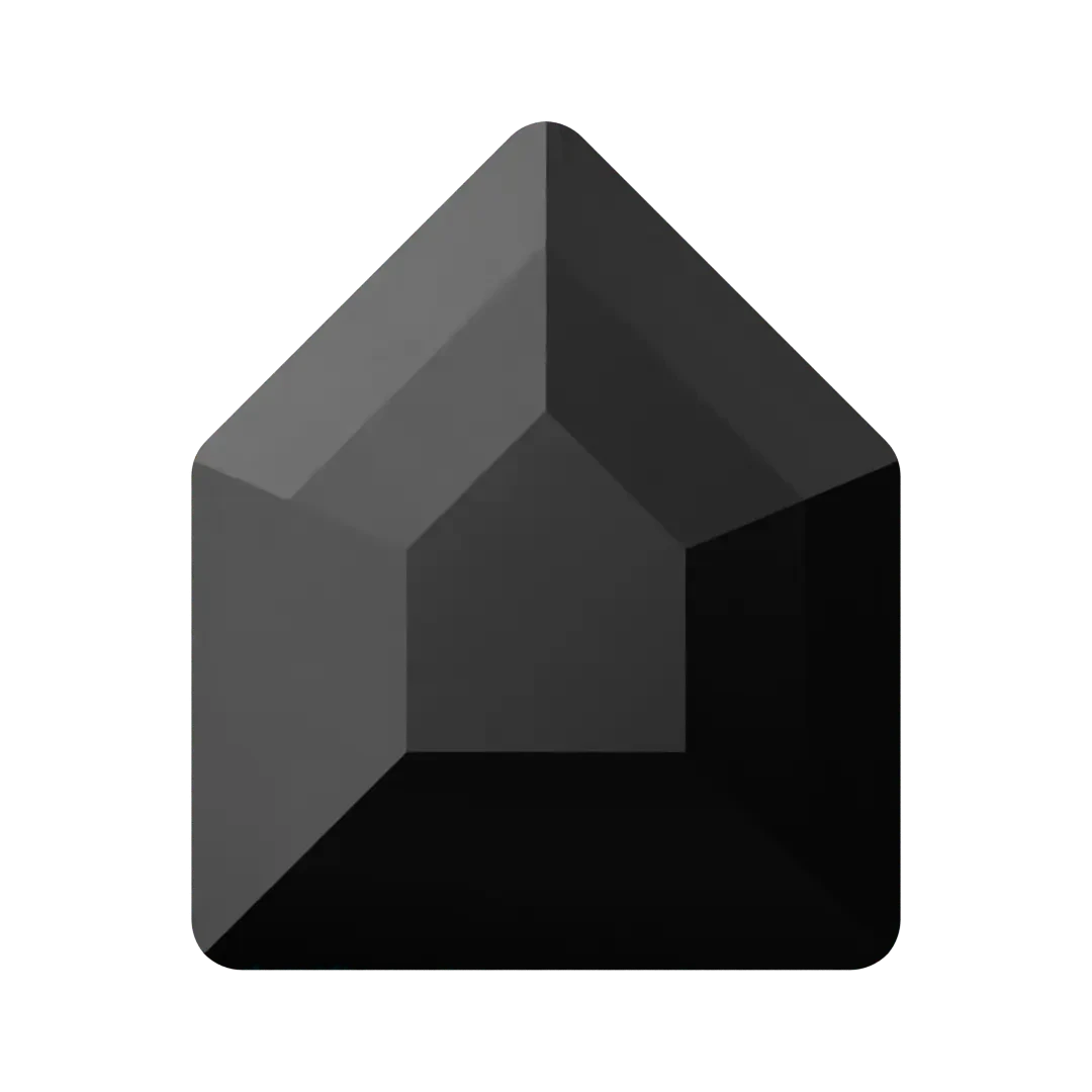 Swarovski rhinestones non hotfix Concise Pentagon (2775) in Jet UNFOILED are flat back crystals that can easily be applied to most surfaces with glue. Swarovski Concise Pentagon shaped crystals have a five-sided polygon shape with flat sides. The edges of the pentagon are straight, and the surface of the crystal is intricately cut with a series of small facets arranged in a geometric pattern.