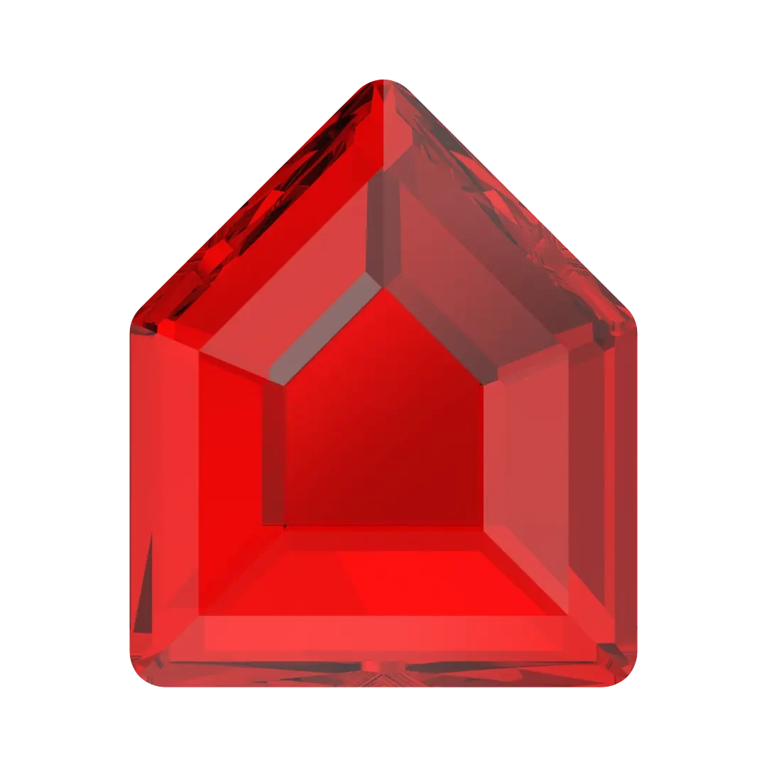 Swarovski rhinestones non hotfix Concise Pentagon (2775) in Light Siam are flat back crystals that can easily be applied to most surfaces with glue. Swarovski Concise Pentagon shaped crystals have a five-sided polygon shape with flat sides. The edges of the pentagon are straight, and the surface of the crystal is intricately cut with a series of small facets arranged in a geometric pattern.