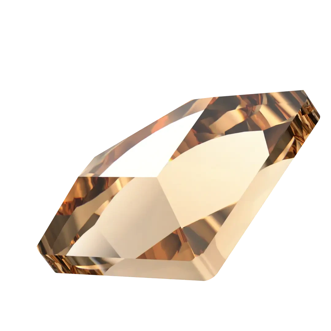 Swarovski rhinestones non hotfix Connector (2715) in Light Colorado Topaz are flat back crystals that can easily be applied to most surfaces with glue. Swarovski Connector shaped crystals are triangular in shape and have two straight edges that are joined with a curve.