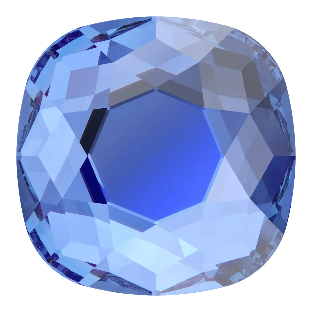 Swarovski rhinestones non hotfix Cushion (2471) in Sapphire are flat back crystals that can easily be applied to most surfaces with glue. Swarovski Cushion shaped crystals are characterized by their square shape with rounded corners, giving them a cushion-like appearance. They have a flat top with multiple surrounding facets, creating a brilliant sparkle and shine. The facets are arranged in a specific pattern to maximize the reflection of light.