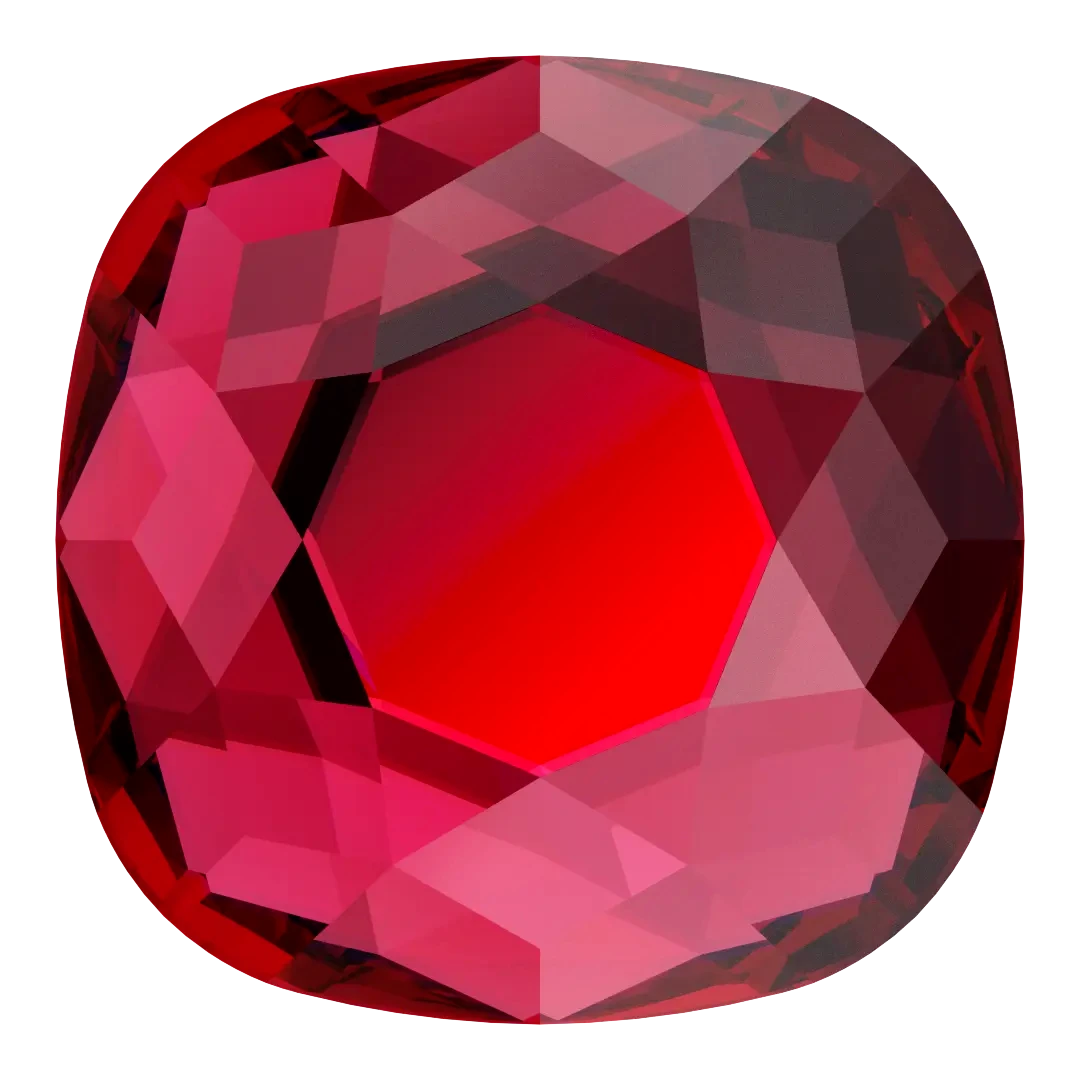 Swarovski rhinestones non hotfix Cushion (2471) in Scarlet are flat back crystals that can easily be applied to most surfaces with glue. Swarovski Cushion shaped crystals are characterized by their square shape with rounded corners, giving them a cushion-like appearance. They have a flat top with multiple surrounding facets, creating a brilliant sparkle and shine. The facets are arranged in a specific pattern to maximize the reflection of light.