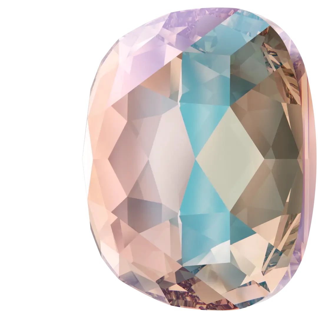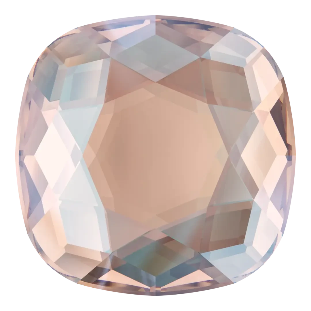 Swarovski rhinestones non hotfix Cushion (2471) in Vintage Rose Shimmer are flat back crystals that can easily be applied to most surfaces with glue. Swarovski Cushion shaped crystals are characterized by their square shape with rounded corners, giving them a cushion-like appearance. They have a flat top with multiple surrounding facets, creating a brilliant sparkle and shine. The facets are arranged in a specific pattern to maximize the reflection of light.
