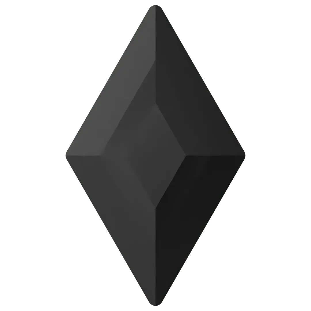 Swarovski rhinestones non hotfix Diamond (2773) in Jet UNFOILED are flat back crystals that can easily be applied to most surfaces with glue. Swarovski diamond shaped crystals are characterized by their symmetrical and precise diamond shape. They have a pointed top and the facets are arranged in a manner that creates a striking and sparkling effect when light hits them.
