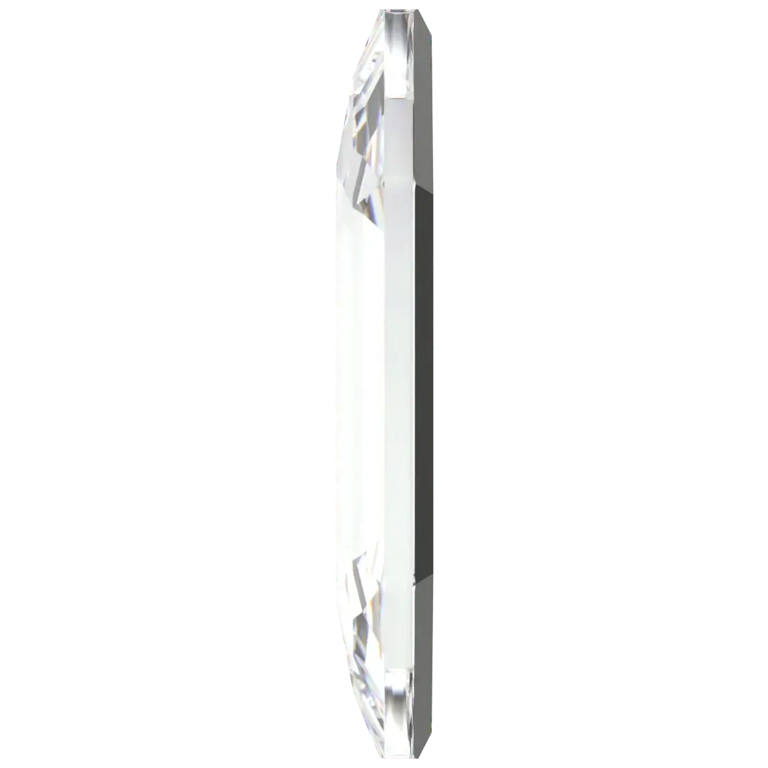 Swarovski rhinestones non hotfix Elongated Hexagon (2776) in Crystal are flat back crystals that can easily be applied to most surfaces with glue. Swarovski Elongated Hexagon shaped features a unique hexagonal shape. Unlike a regular hexagon, this crystal has elongated sides, giving it a more slender and elongated appearance. The crystal has a flat top surface and bevelled edges that catch the light and create a dazzling effect.