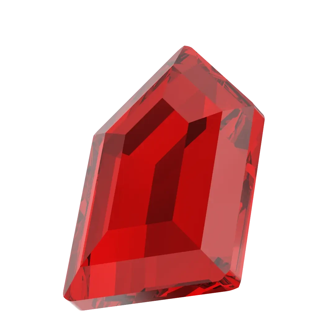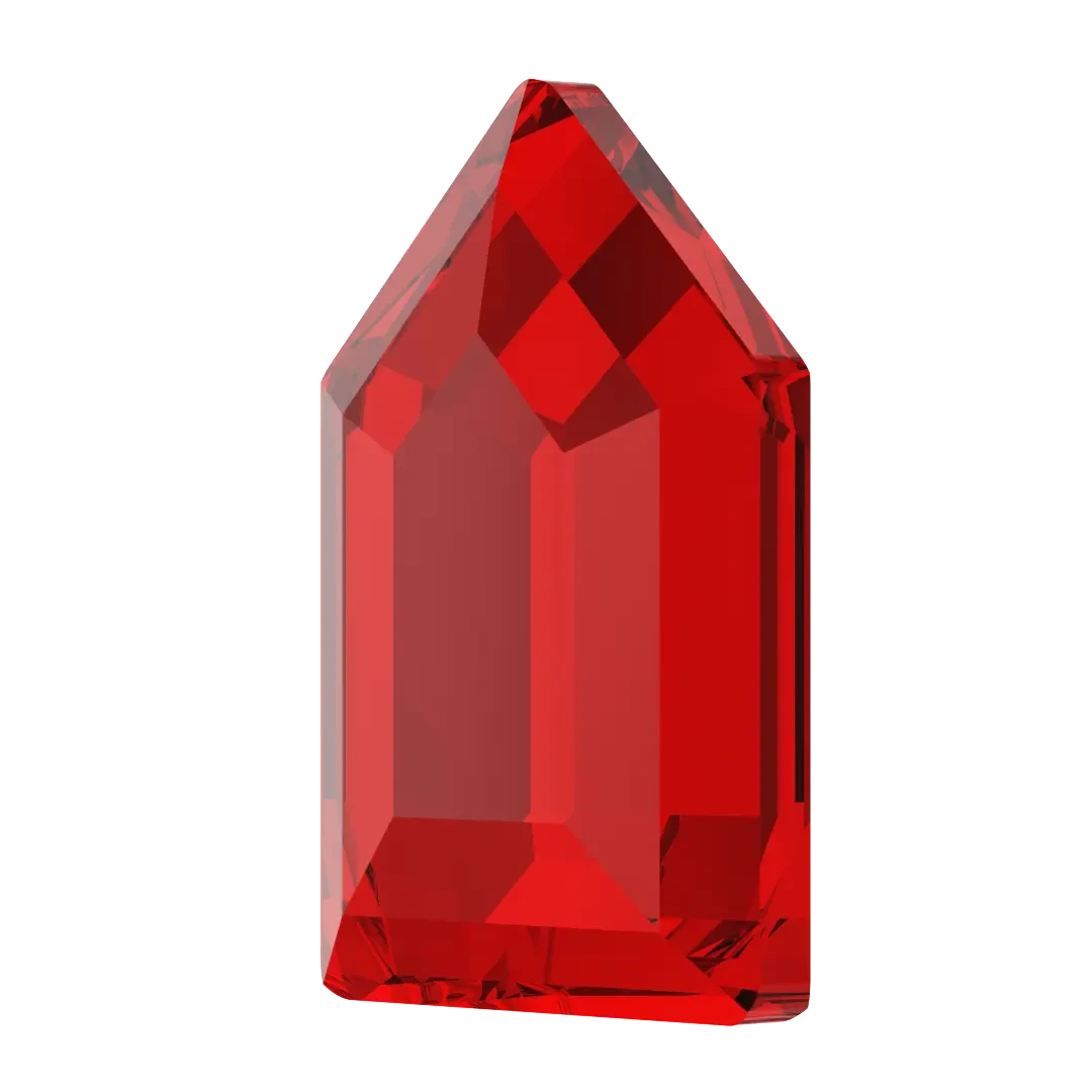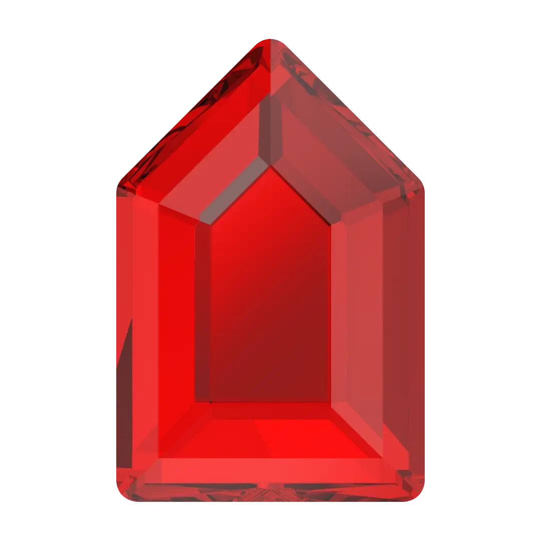 Swarovski rhinestones non hotfix Elongated Pentagon (2774) in Light Siam are flat back crystals that can easily be applied to most surfaces with glue. Swarovski Elongated Pentagon shaped crystals are a pentagonal shape with elongated sides. The elongated shape of the crystal gives it a more sleek appearance compared to a regular pentagon. The crystal has a flat top surface and bevelled edges, with five straight sides where two sides meet to a point.