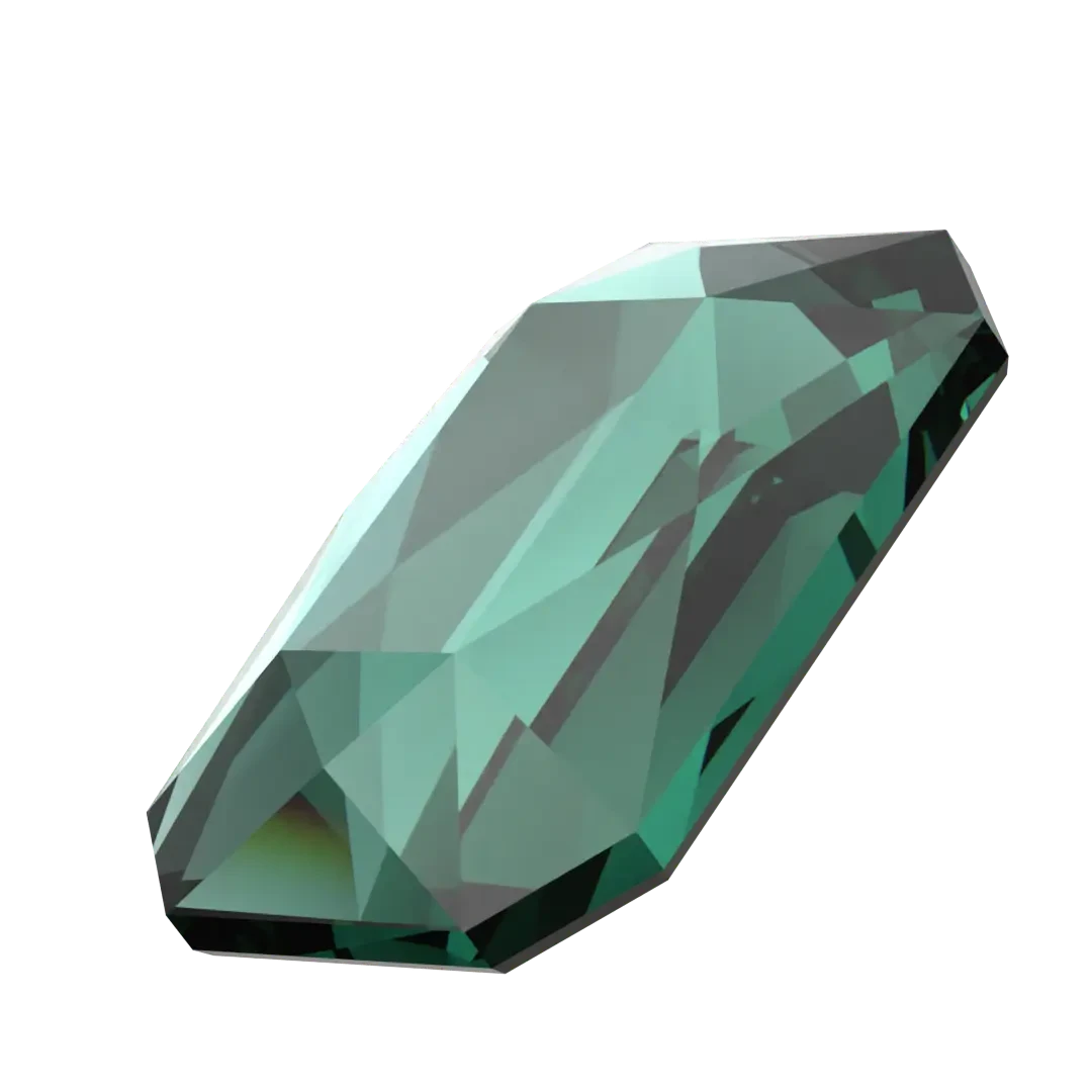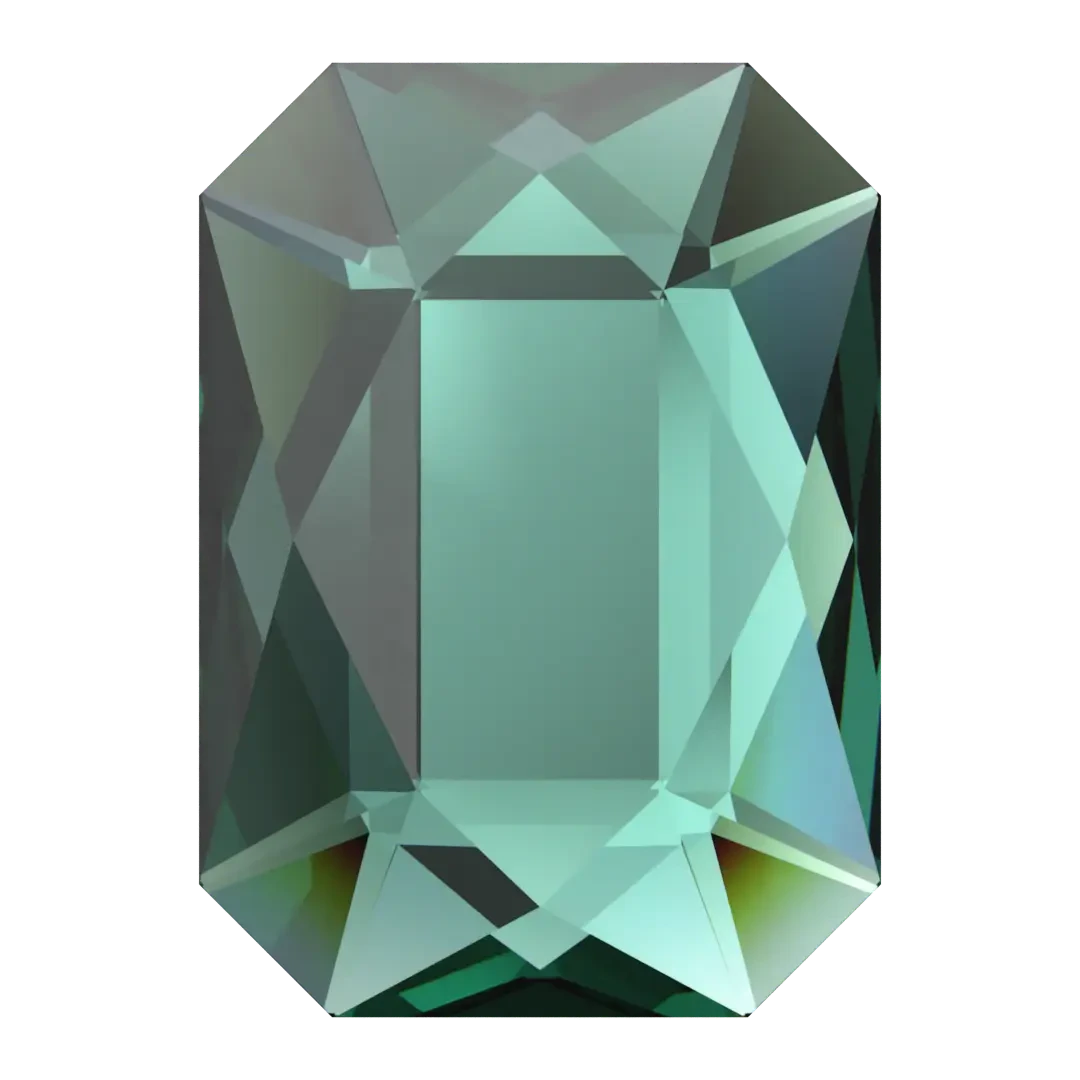 Swarovski rhinestones non hotfix Emerald Cut (2602) in Emerald are flat back crystals that can easily be applied to most surfaces with glue. Swarovski Emerald Cut is a type of crystal cut that mimics the shape of an emerald gemstone. It is a rectangular shape with cut corners, and its flat top surface is usually divided into facets, creating a step-like effect. The Emerald Cut is known for its elegant and sophisticated appearance, and it is often used in high-end jewellery and fashion designs.