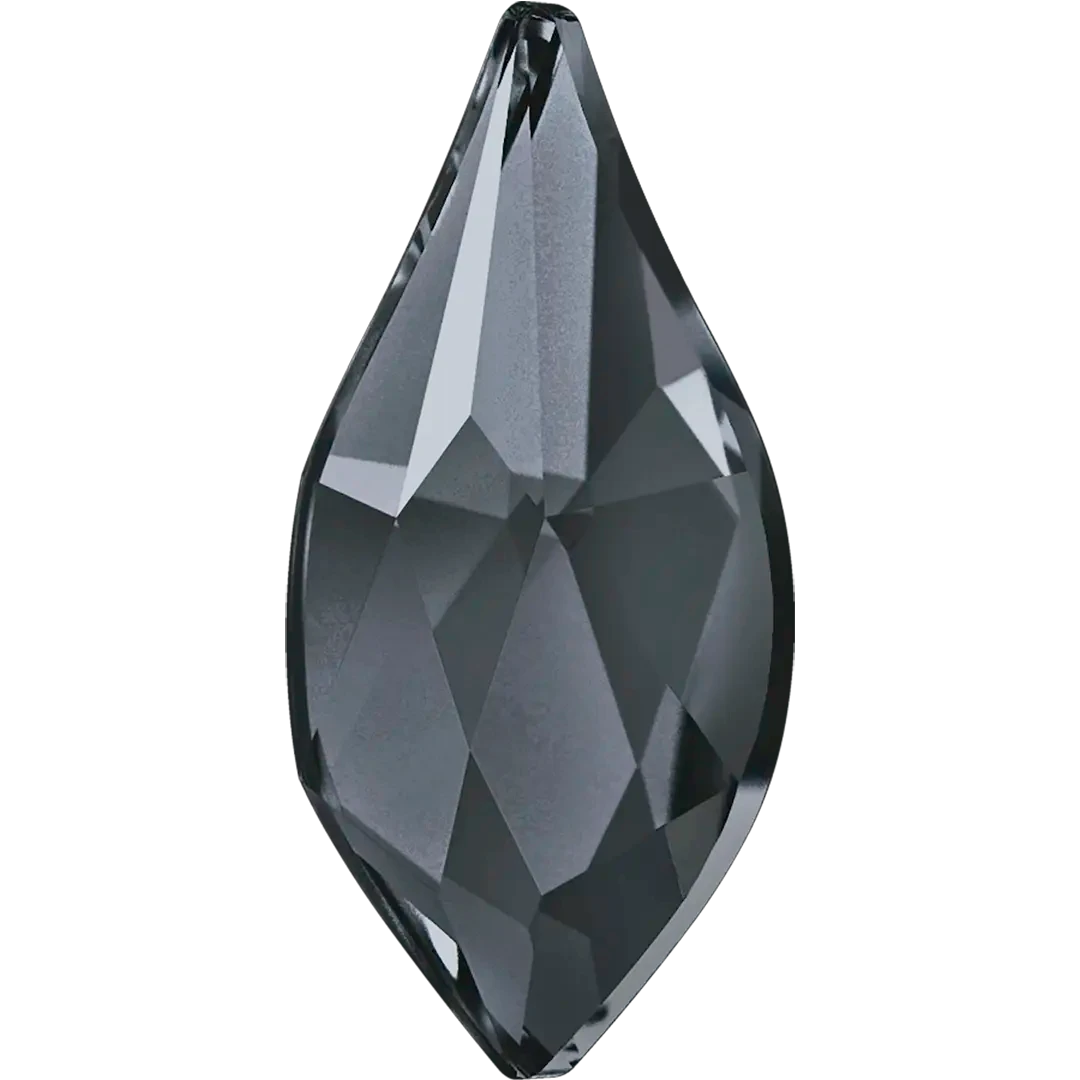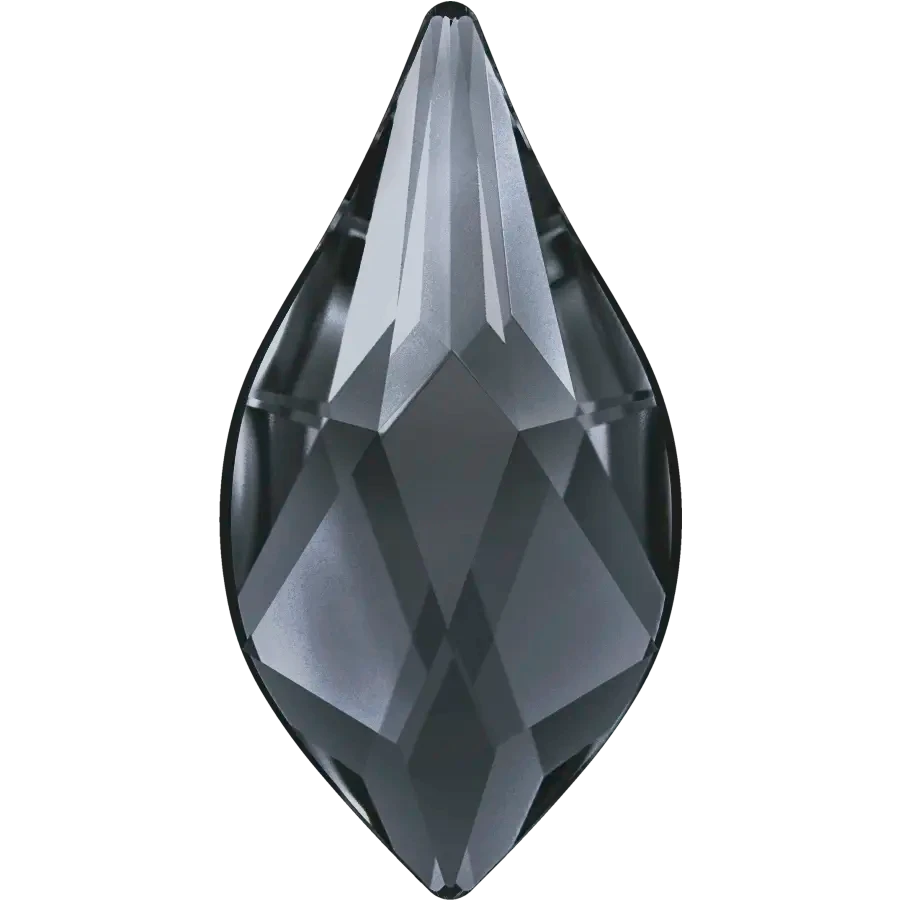 Swarovski rhinestones non hotfix Flame (2205) in Crystal Silver Night are flat back crystals that can easily be applied to most surfaces with glue. Swarovski Flame shaped crystals have a unique design that resembles a stylized flame. It has a tapered, elongated shape with a pointed tip at one end and a rounded tip at the other. The shape is multi-faceted and rises to a slight point at the top to create a sparkling effect when it catches the light.