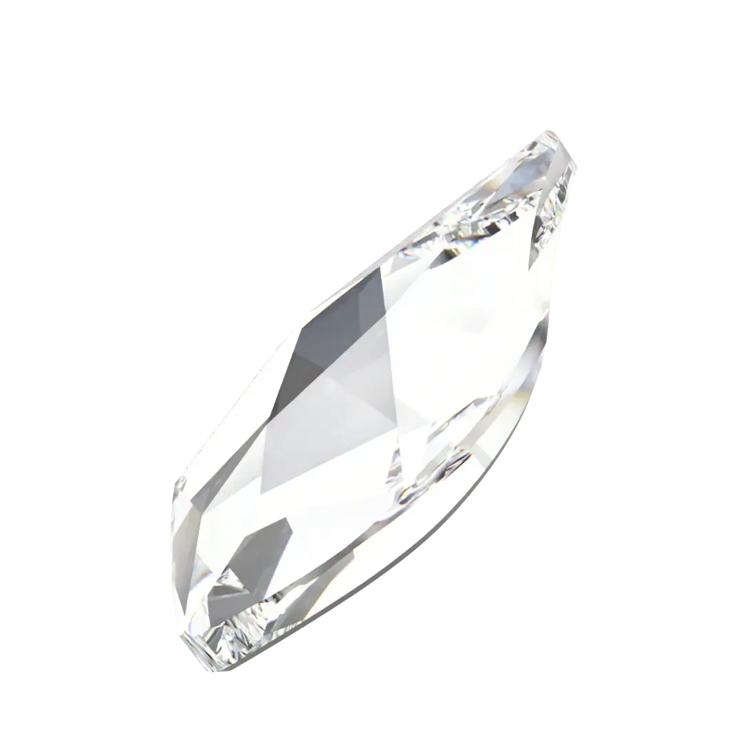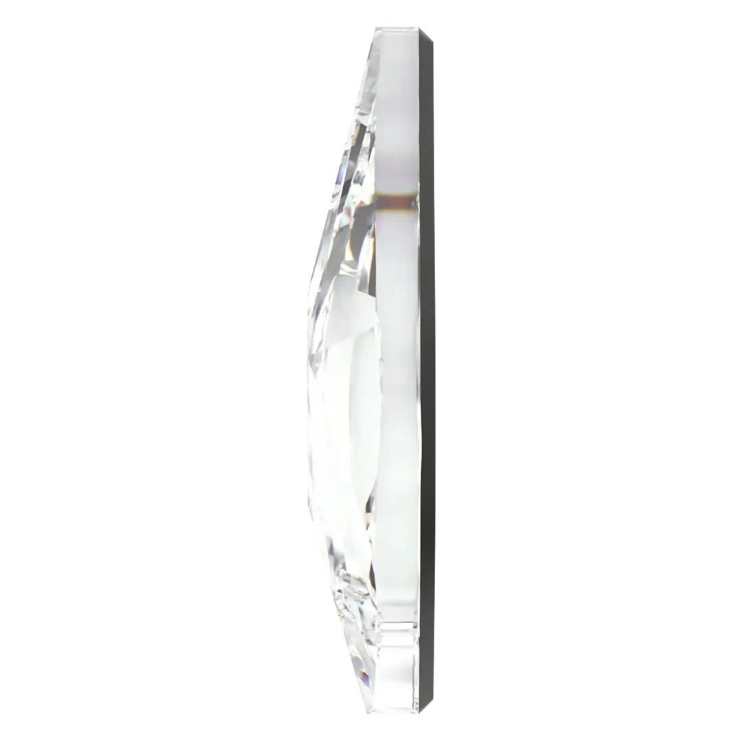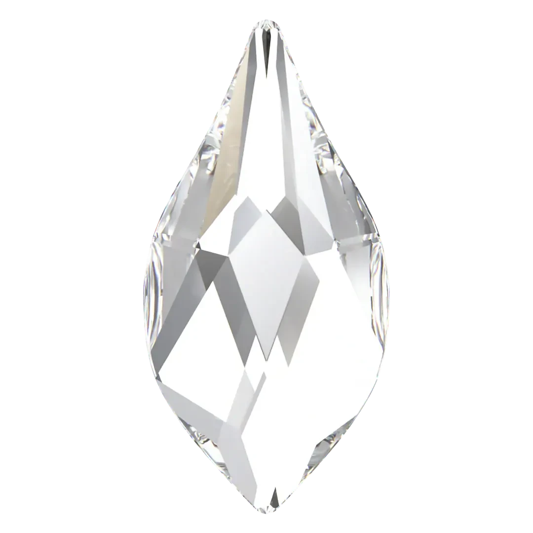 Swarovski rhinestones non hotfix Flame (2205) in Crystal are flat back crystals that can easily be applied to most surfaces with glue. Swarovski Flame shaped crystals have a unique design that resembles a stylized flame. It has a tapered, elongated shape with a pointed tip at one end and a rounded tip at the other. The shape is multi-faceted and rises to a slight point at the top to create a sparkling effect when it catches the light.