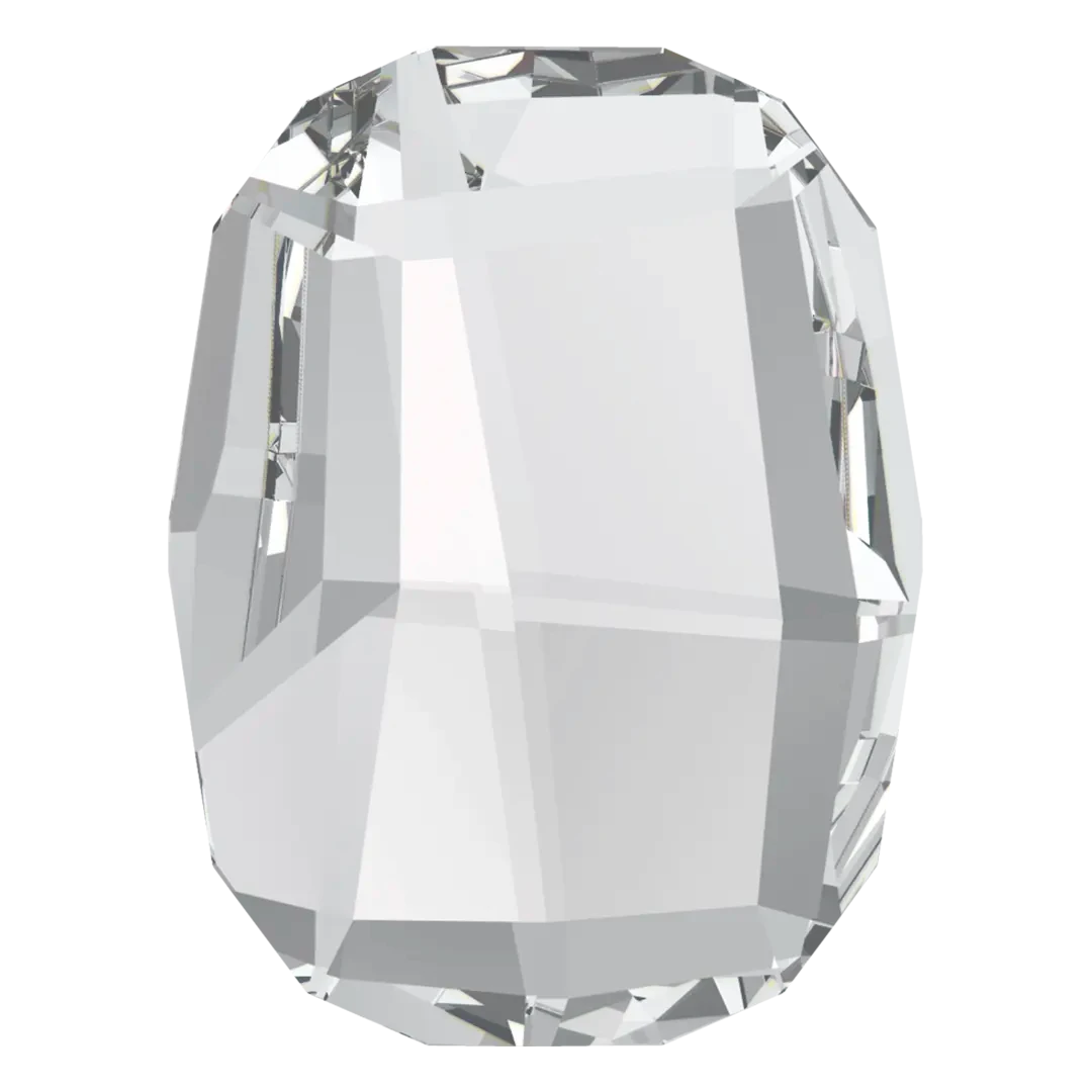 Swarovski rhinestones non hotfix Graphic (2585) in Crystal are flat back crystals that can easily be applied to most surfaces with glue. Swarovski Graphic shaped crystals are rectangular in shape with curved sides, giving a unique and modern design. They feature a geometric shape with a combination of straight lines, curves, and angles that create an intricate pattern on the crystal’s surface.