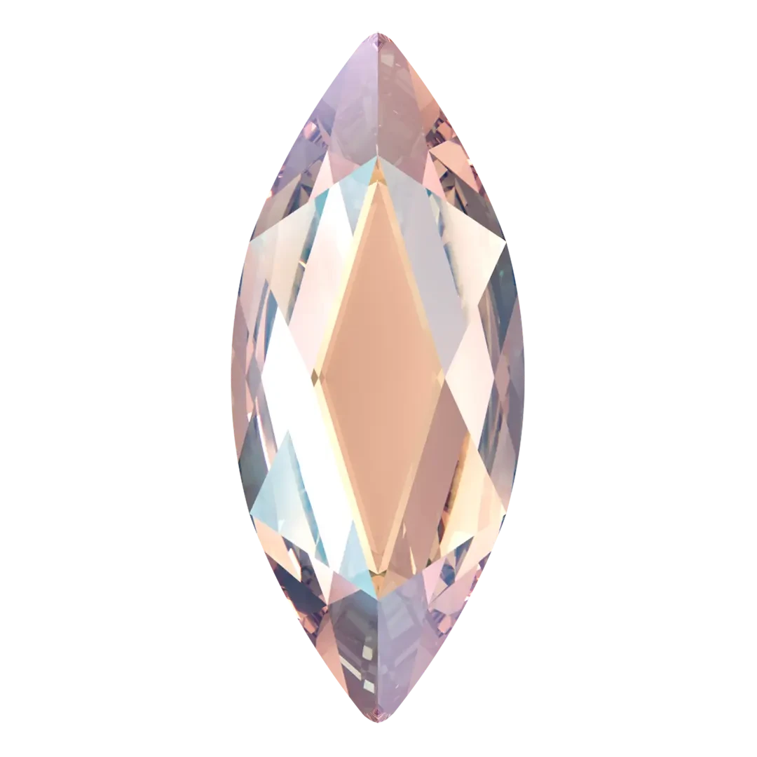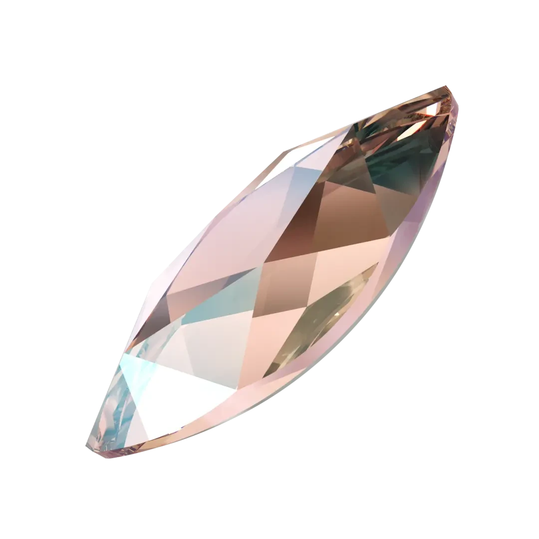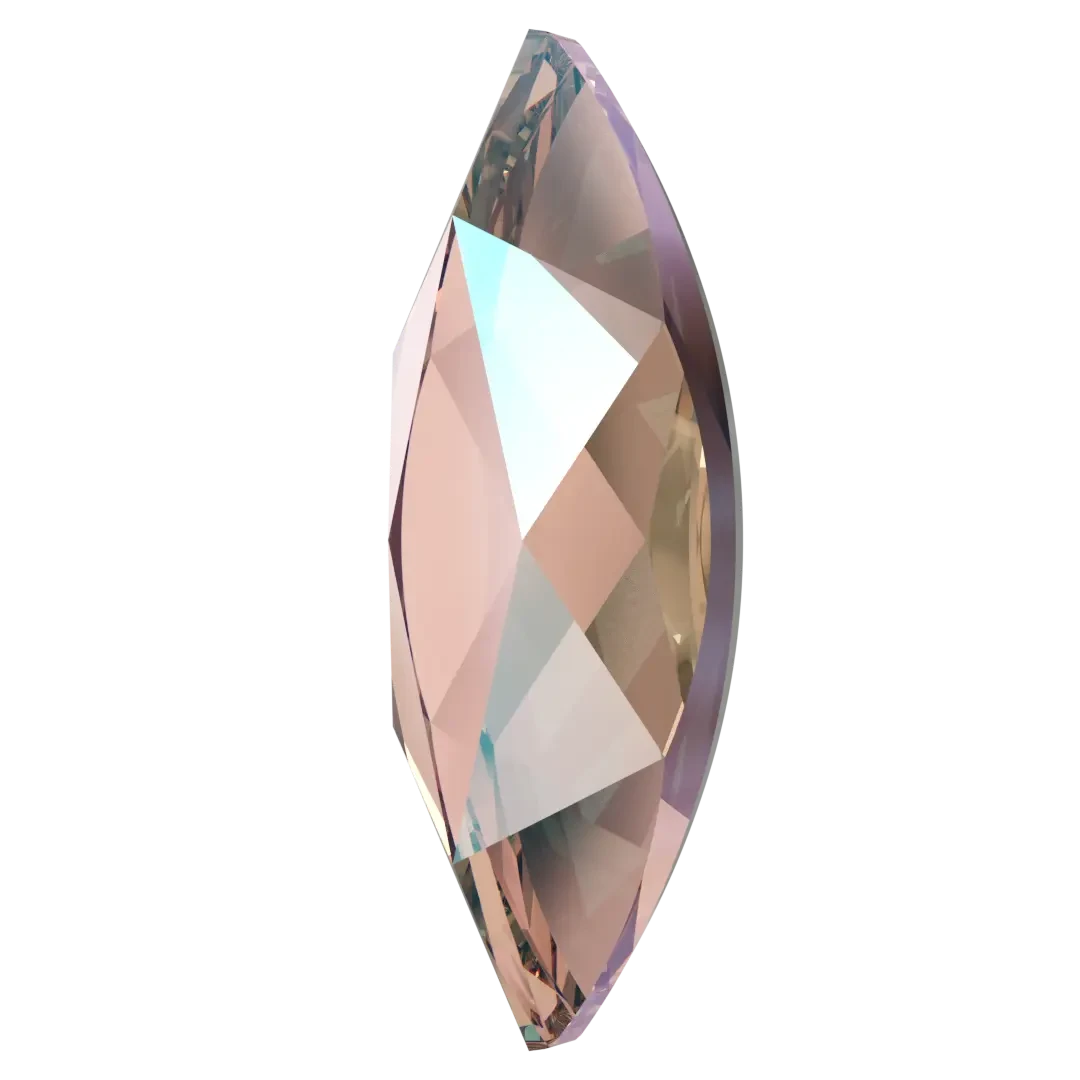 Swarovski rhinestones non hotfix Marquise (2201) in Vintage Rose Shimmer are flat back crystals that can easily be applied to most surfaces with glue. Swarovski Marquise shaped crystals are an elongated elliptical shape that has pointed ends, creating the illusion of greater size due to its long narrow shape.