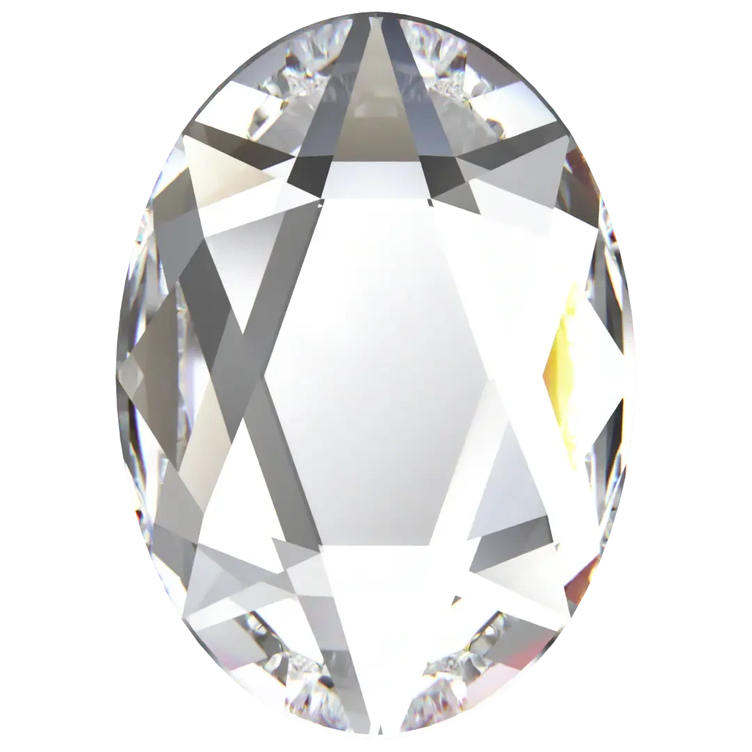 Swarovski rhinestones non hotfix Oval (2603) in Crystal are flat back crystals that can easily be applied to most surfaces with glue. Swarovski Oval shaped crystals are an elongated elliptical shape with rounded ends. They have a multi-faceted surface that create a multi-faceted effect, which gives them a sparkling and radiant appearance.