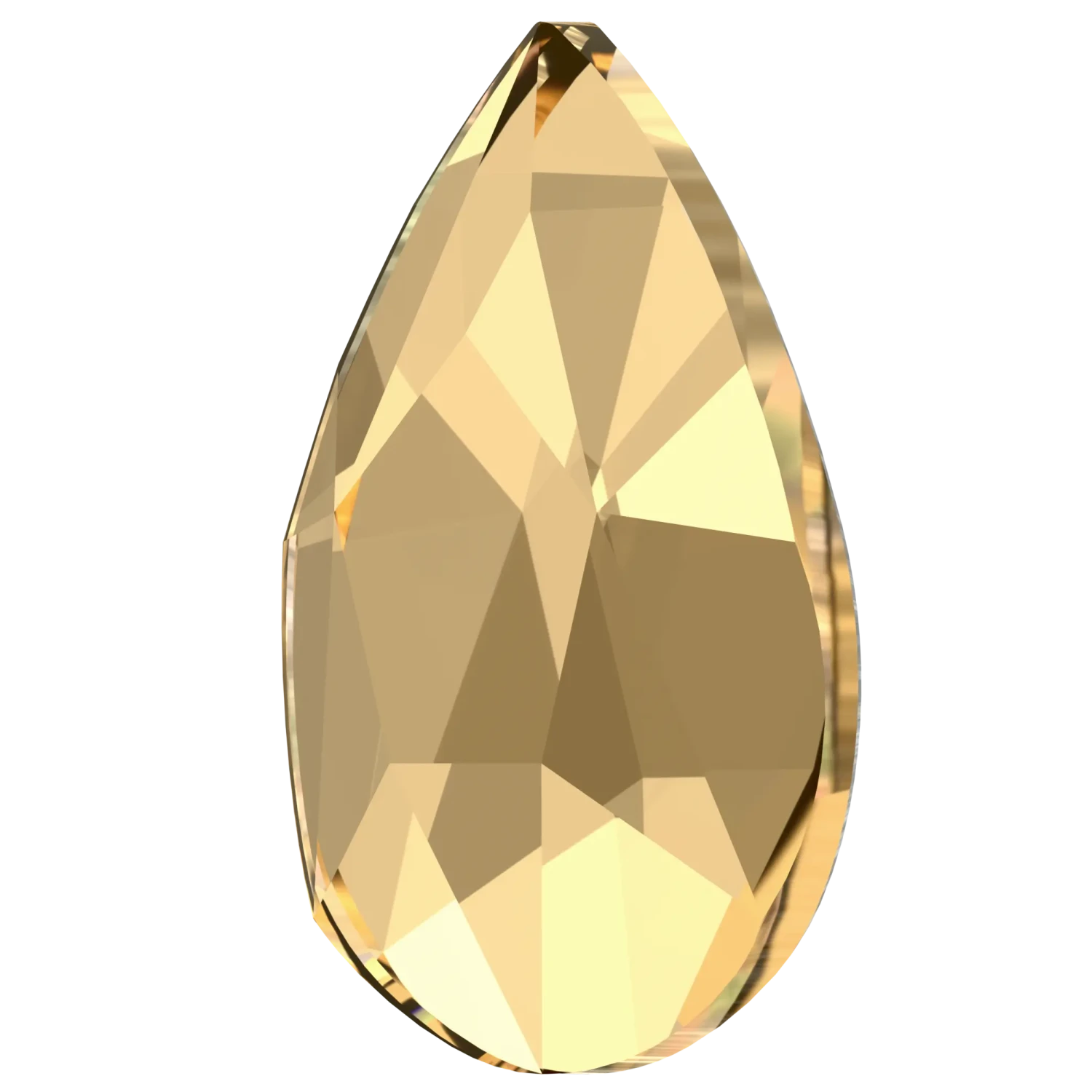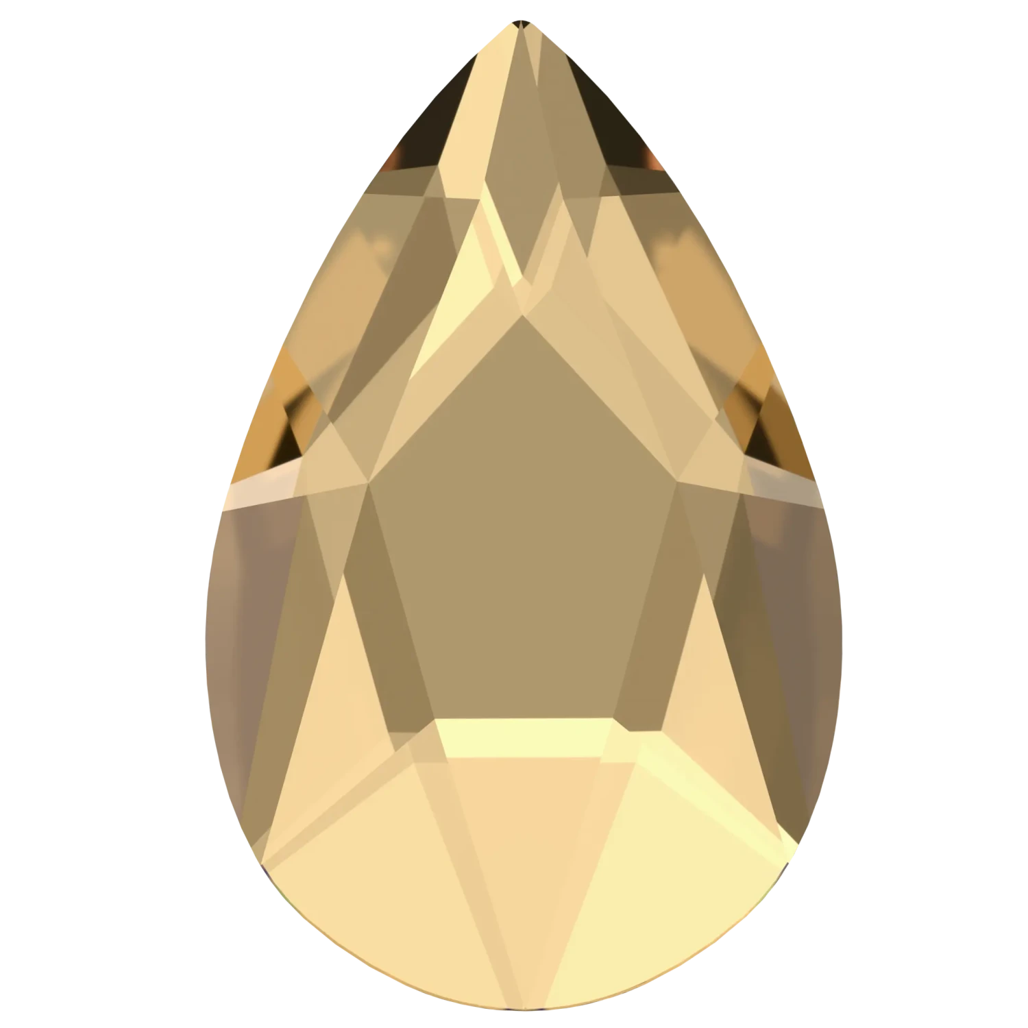 Swarovski rhinestones non hotfix Pear (2303) in Crystal Golden Shadow are flat back crystals that can easily be applied to most surfaces with glue. Swarovski Pear shaped crystals are traditional pear in shape with a rounded bottom and a pointed top. They have a symmetrical shape with a faceted surface that creates a brilliant shine and sparkle.