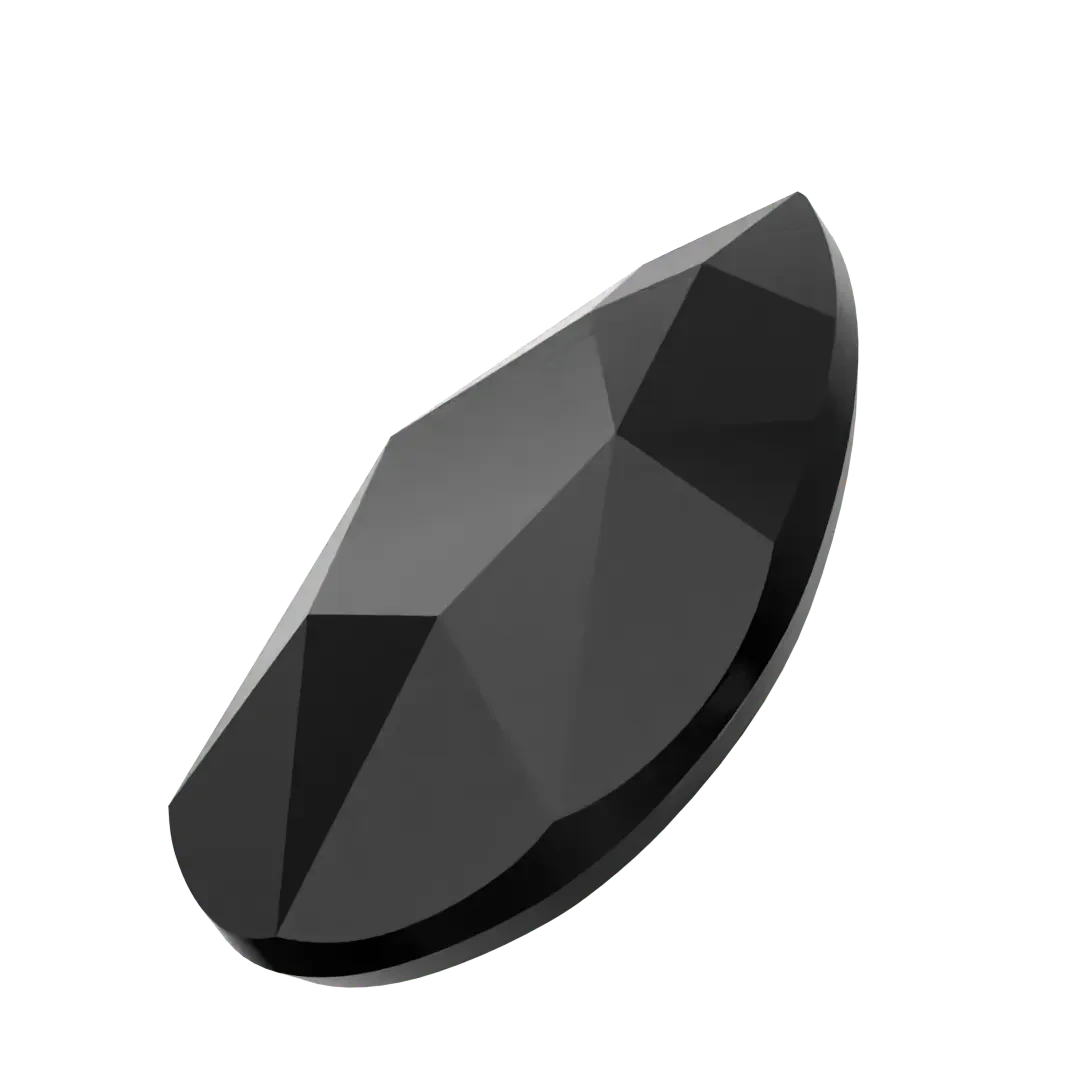 Swarovski rhinestones non hotfix Pear (2303) in Jet UNFOILED are flat back crystals that can easily be applied to most surfaces with glue. Swarovski Pear shaped crystals are traditional pear in shape with a rounded bottom and a pointed top. They have a symmetrical shape with a faceted surface that creates a brilliant shine and sparkle.