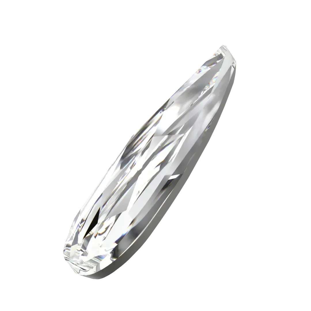 Swarovski rhinestones non hotfix Raindrop (2304) in Crystal are flat back crystals that can easily be applied to most surfaces with glue. Swarovski Raindrop shaped crystals are elongated and shaped just like raindrop, resembling a raindrop falling from the sky. They have a faceted surface that creates a multi-dimensional effect, giving them a sparkling and radiant appearance. The top of the crystal is typically round, while the bottom tapers to a point, creating a dramatic and eye-catching design.