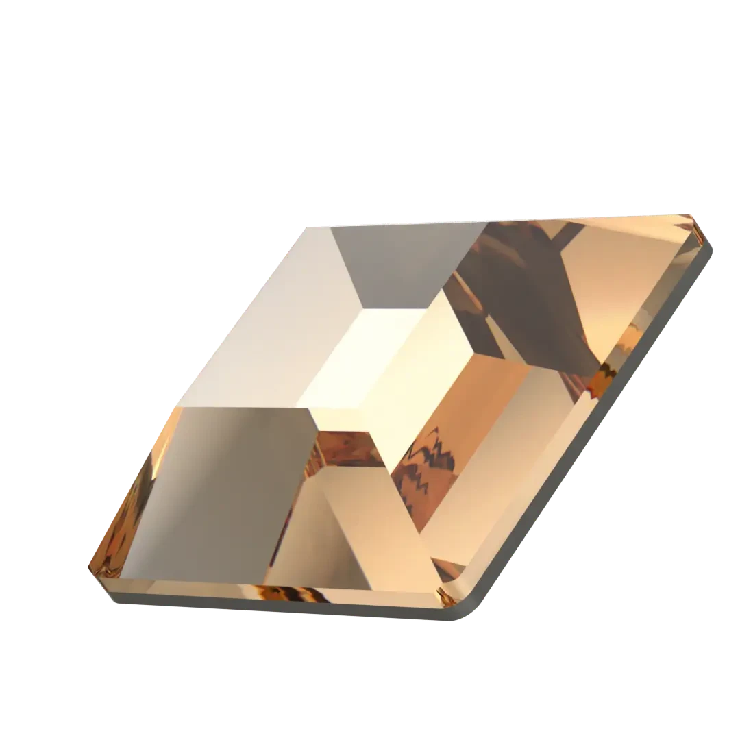 Swarovski rhinestones non hotfix Square (2400) in Light Colorado Topaz are flat back crystals that can easily be applied to most surfaces with glue. Swarovski Square shaped crystals are a four-sided square shape that has a flat top and simple bevelled edges. The faceting of the crystal is designed to reflect and refract light, with the slight bevel to create a softer look.