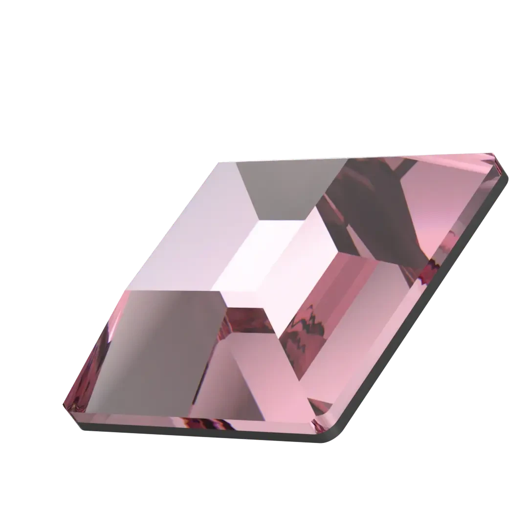 Swarovski rhinestones non hotfix Square (2400) in Light Rose are flat back crystals that can easily be applied to most surfaces with glue. Swarovski Square shaped crystals are a four-sided square shape that has a flat top and simple bevelled edges. The faceting of the crystal is designed to reflect and refract light, with the slight bevel to create a softer look.