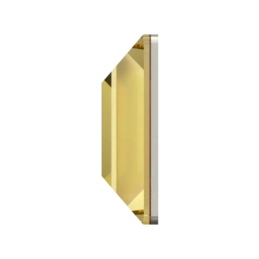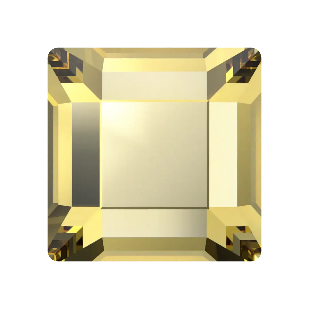 Swarovski rhinestones non hotfix Square (2400) in Recreated Dark Jonquil are flat back crystals that can easily be applied to most surfaces with glue. Swarovski Square shaped crystals are a four-sided square shape that has a flat top and simple bevelled edges. The faceting of the crystal is designed to reflect and refract light, with the slight bevel to create a softer look.