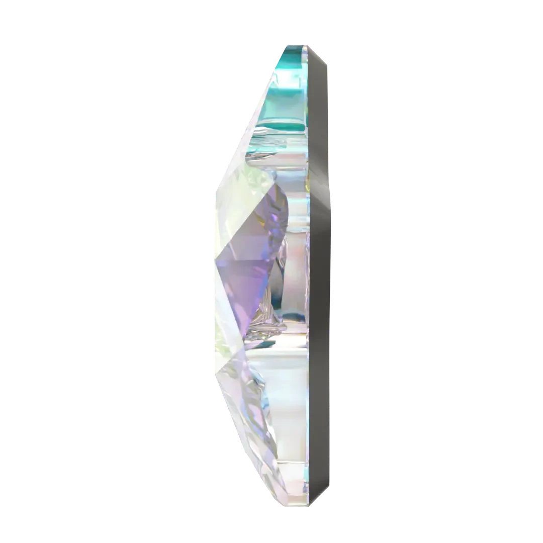 Swarovski rhinestones non hotfix Star Flower (2754) in Crystal AB are flat back crystals that can easily be applied to most surfaces with glue. Swarovski Star Flower shaped crystals are a unique and versatile shape that combines the elements of a star and a flower. The shape has five rounded points, similar to a star, but the rounded edges give it a softer appearance that can also resemble a flower.