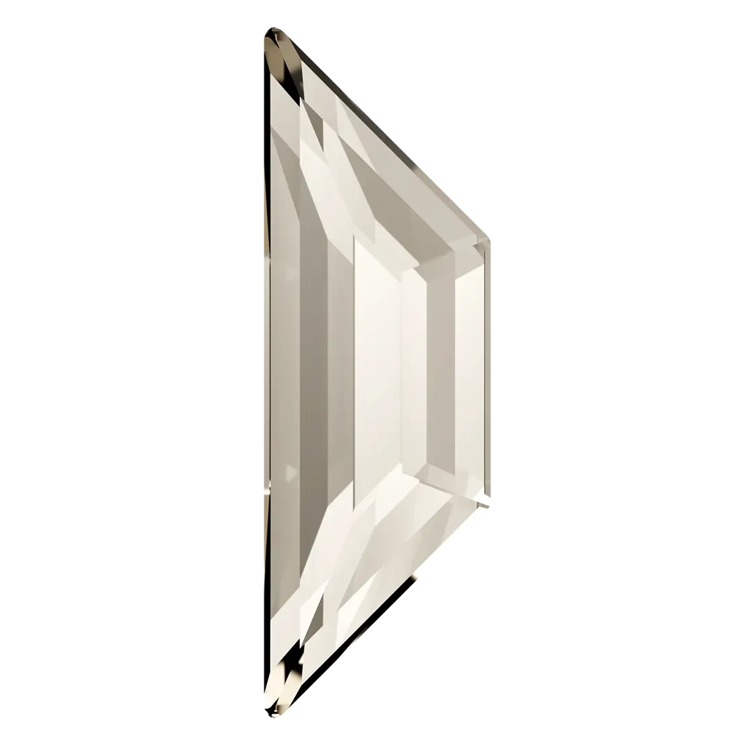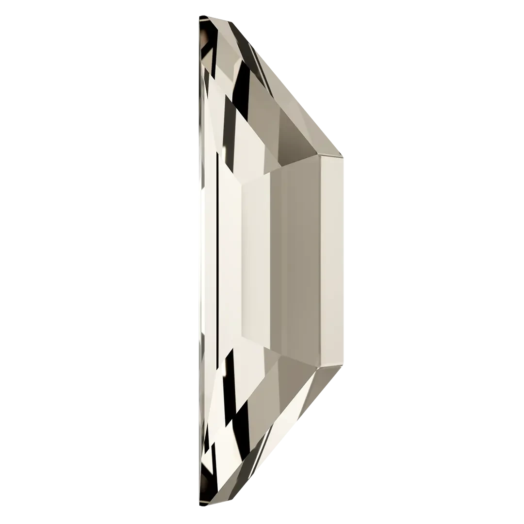 Swarovski rhinestones non hotfix Trapeze (2772) in Crystal Silver Shade are flat back crystals that can easily be applied to most surfaces with glue. Swarovski Trapeze shaped crystals are a unique and modern shape that features a trapezoidal silhouette. The shape is bevelled with angled sides that taper towards the centre, creating a distinctive geometric shape.