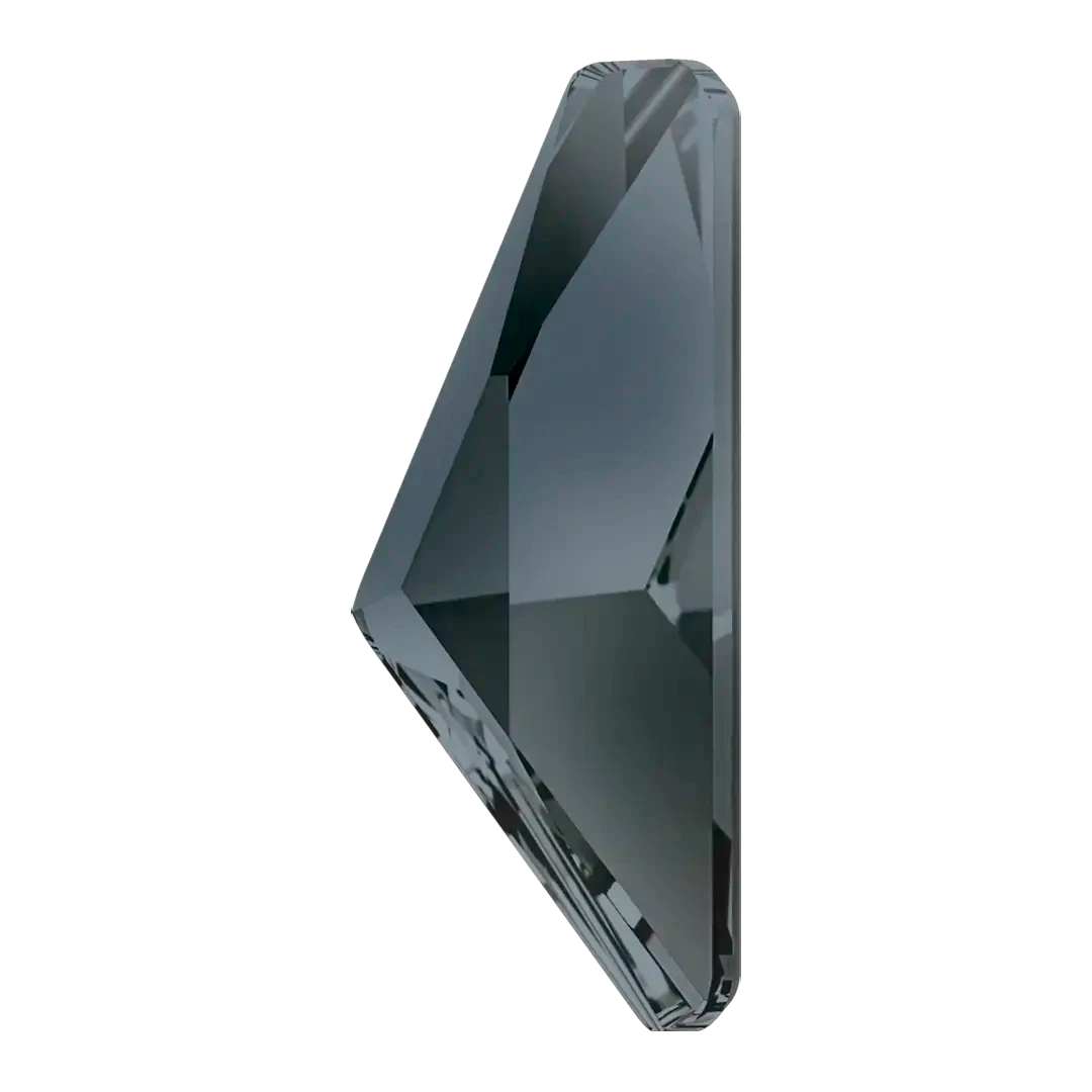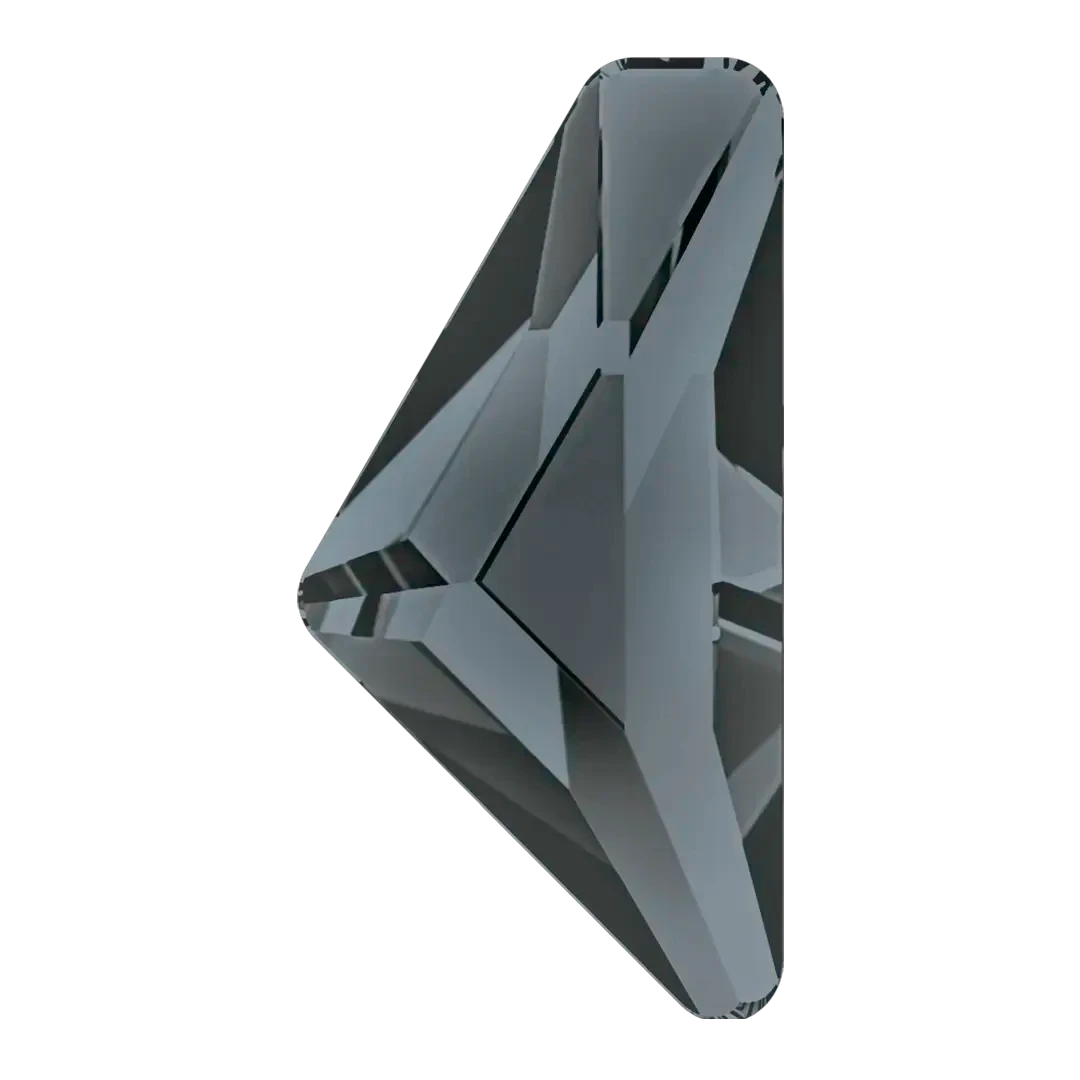 Swarovski rhinestones non hotfix Triangle Alpha (2738) in Crystal Silver Night UNFOILED are flat back crystals that can easily be applied to most surfaces with glue. Swarovski Triangle Alpha shaped crystals are triangular in shape with a precise faceting pattern on the stone’s surface that rises slightly to form a flat top and produces brilliant sparkling effects.