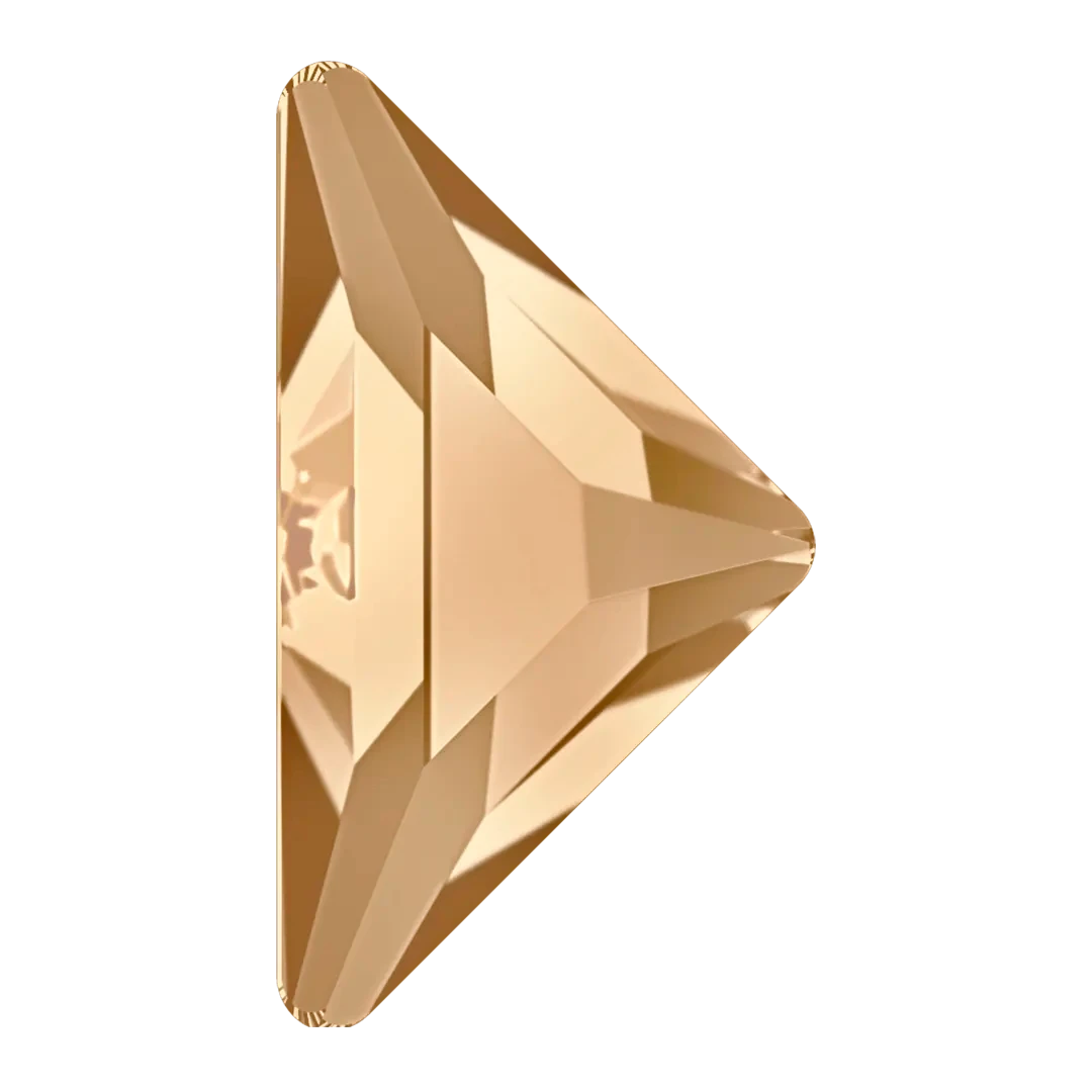 Swarovski rhinestones non hotfix Triangle Gamma (2740) in Crystal Golden Shadow are flat back crystals that can easily be applied to most surfaces with glue. Swarovski Triangle Gamma shaped crystals are triangular shape and is distinguished by its symmetrical shape and faceting patterns. The bevelled edges rise to the centre to form a flat top creating a contemporary look.